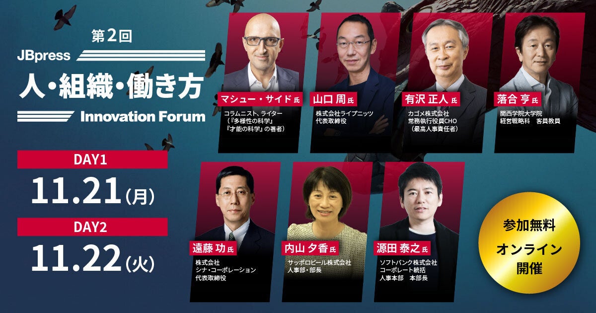 ▼「第2回 JBPress 人・組織・働き方 Innovation Forum」詳細はこちら