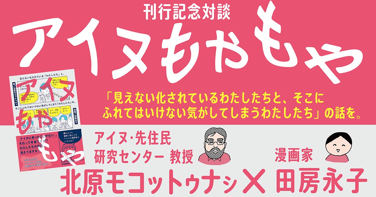 『アイヌもやもや』の著者の北原モコットゥナシ先生(解説)と田房永子さん(漫画)のトークイベントです。書籍の制作秘話や、著者のお二人が会話を重ねるなかで見出した共通性などについてお話いただきます。当日イベントに参加される皆様と一緒に「モヤモヤとの向き合い方を探るイベント」となります。ぜひご参加ください。