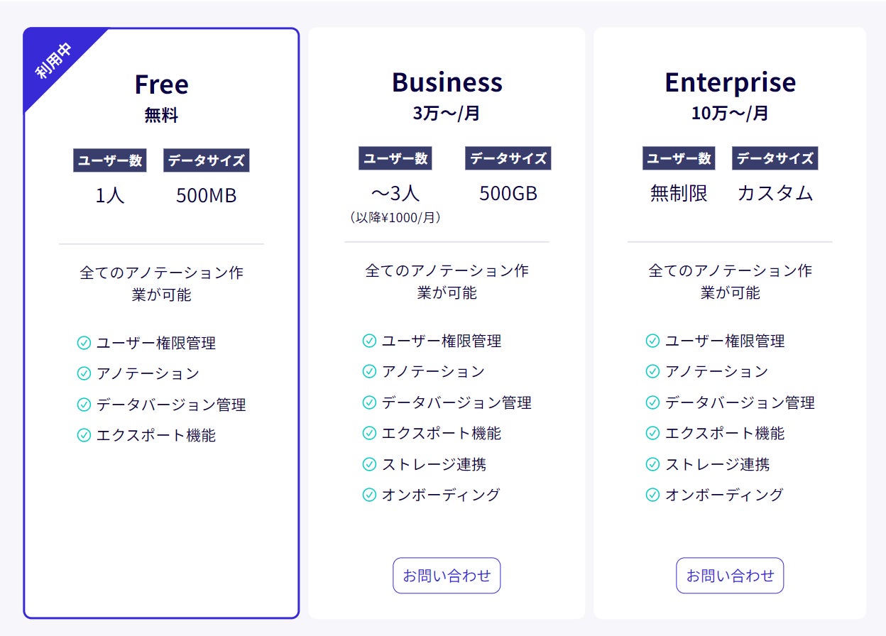 Free: 個人でアノテーションをする際に使いたい、トライアルでまずは使ってみたいお客様向け