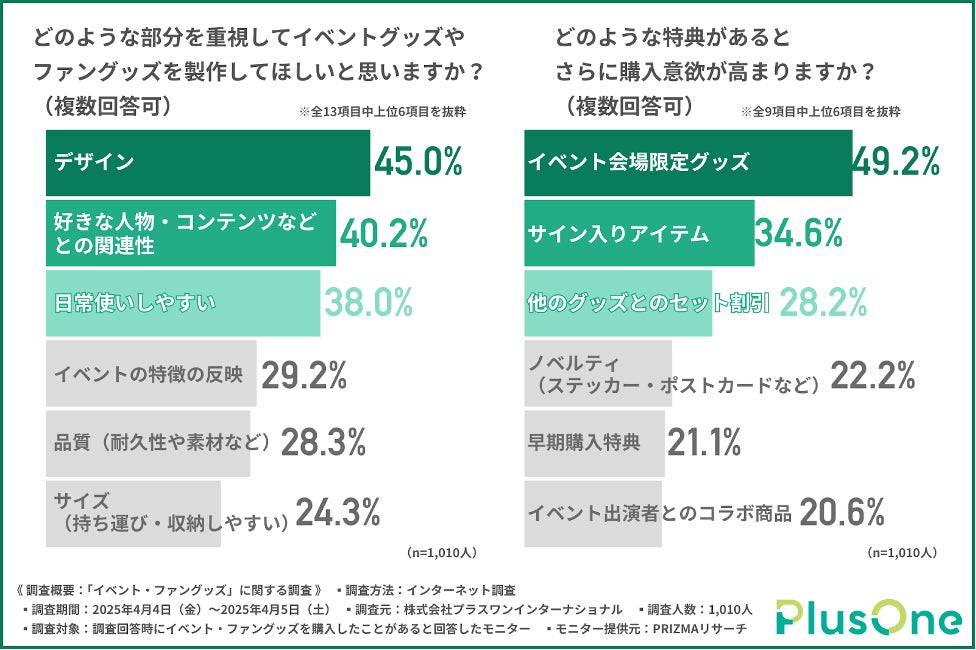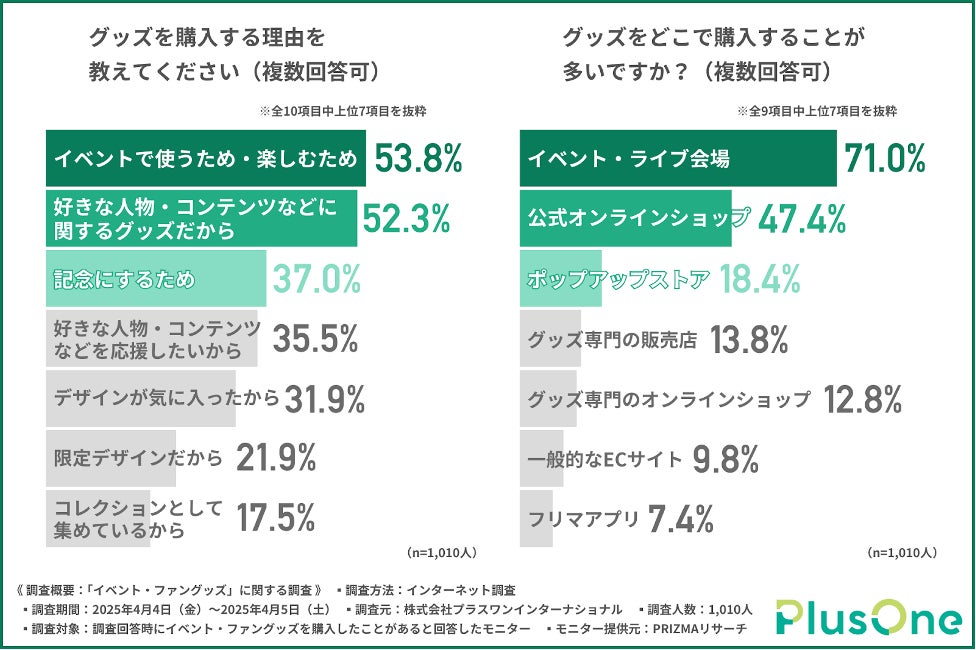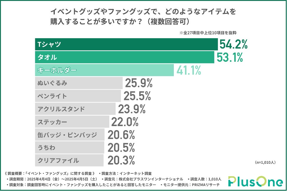 オリジナルウェア・グッズの製造販売を行う株式会社プラスワンインターナショナル(本社:香川県高松市、代表取締役:新開強)は、イベント・ファングッズを購入したことがある1,010名を対象に「イベント・ファングッズ」に関する実態調査を実施しました。