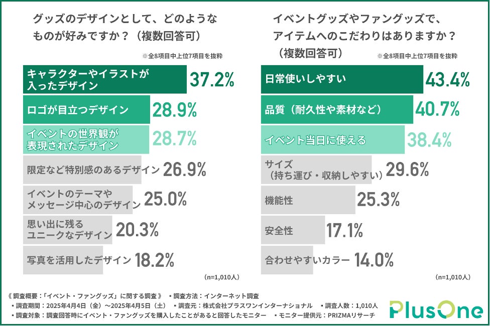イベント・ファングッズには、「イベントらしさ」や「好きな人物・コンテンツとのつながり」を感じられるデザインと、日常でも使える実用性や品質が求められていることが明らかになりました。