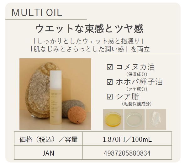 「髪と肌への心地よさ」を大切にしたマルチユースなケアスタイリングアイテムに仕上げました。