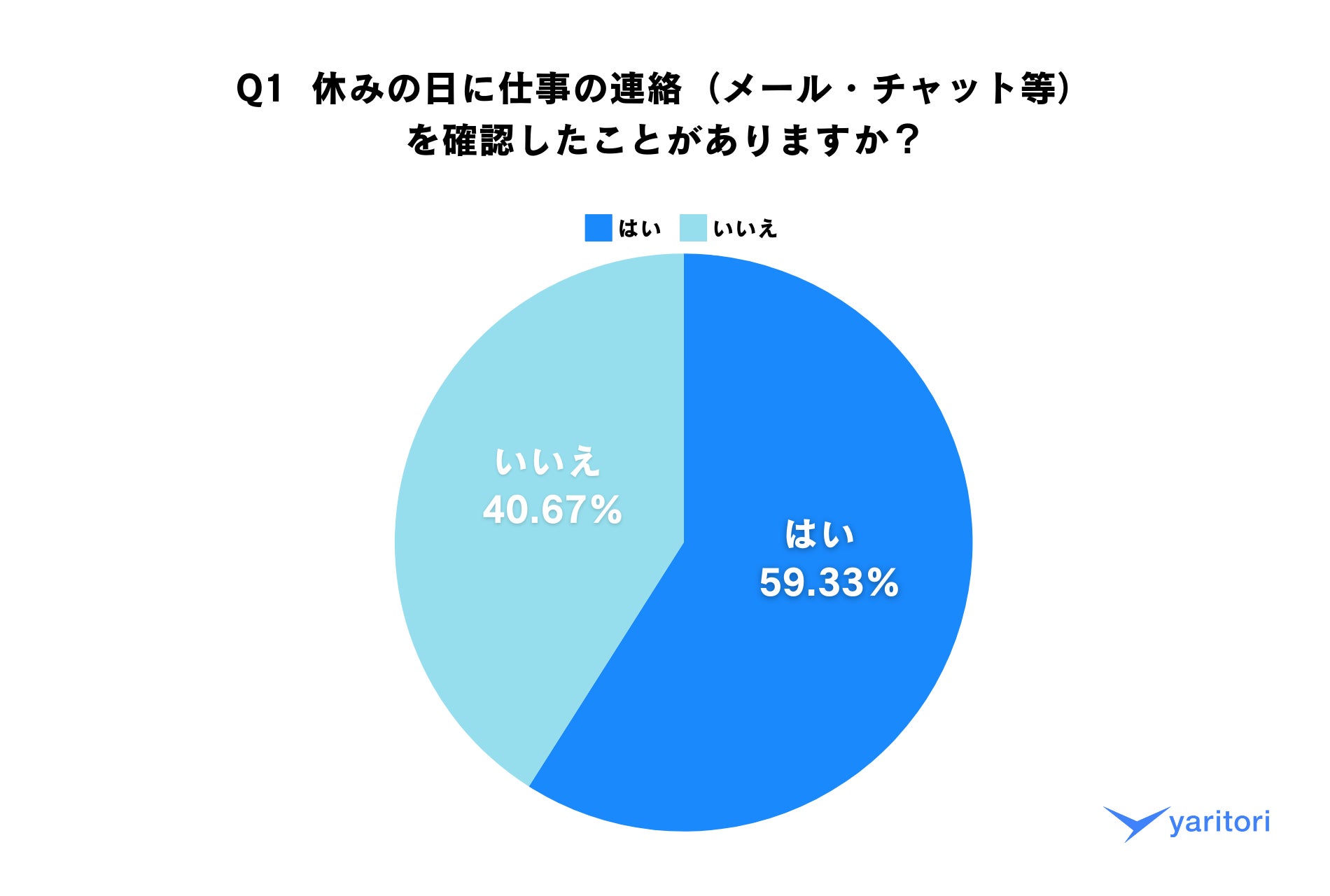 休みの日に仕事の連絡(メール・チャット等)を確認している人は59.33%と、過半数を占める結果になりました。