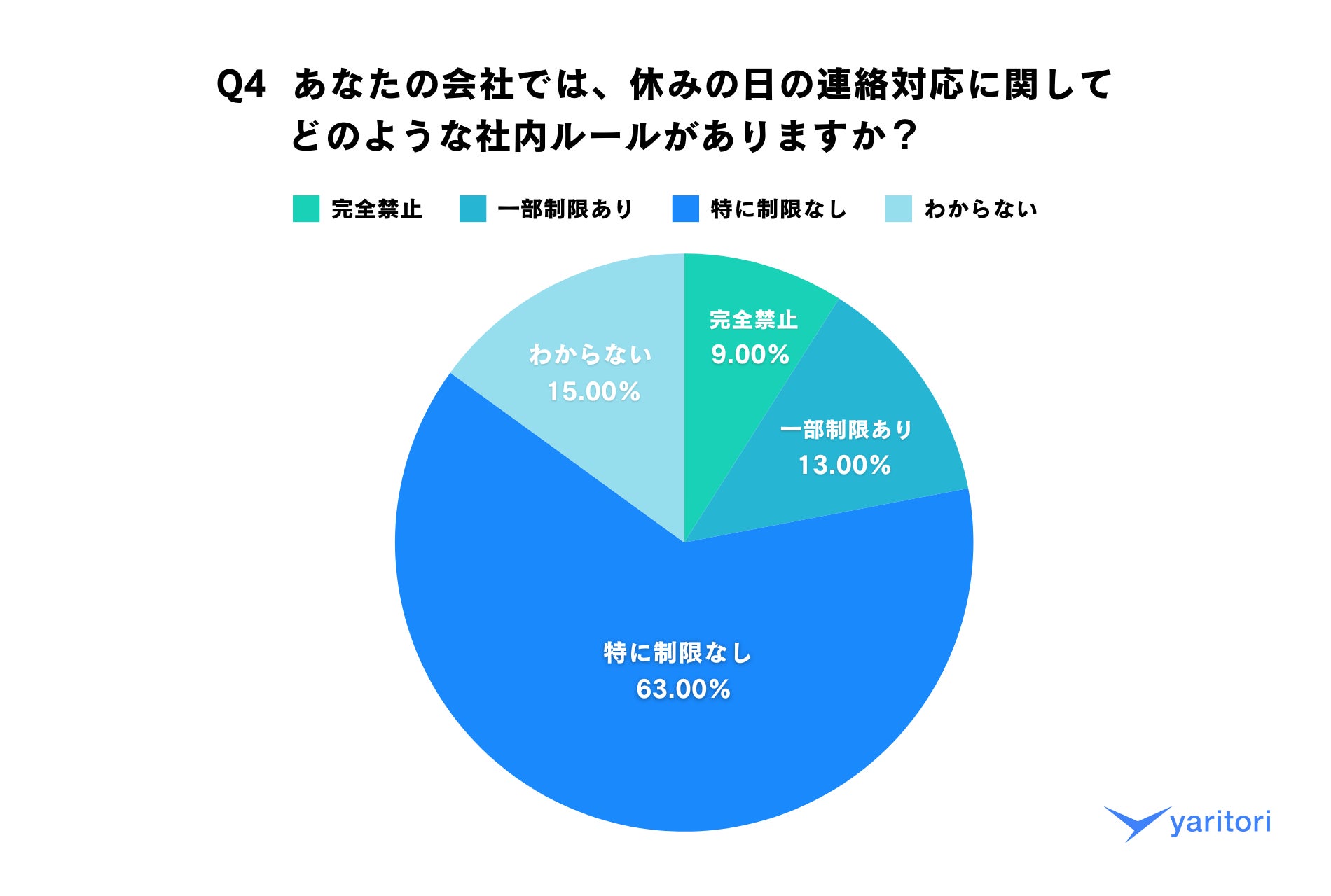 4. 6割以上の会社が休みの日の連絡対応に関するルールを設けていない