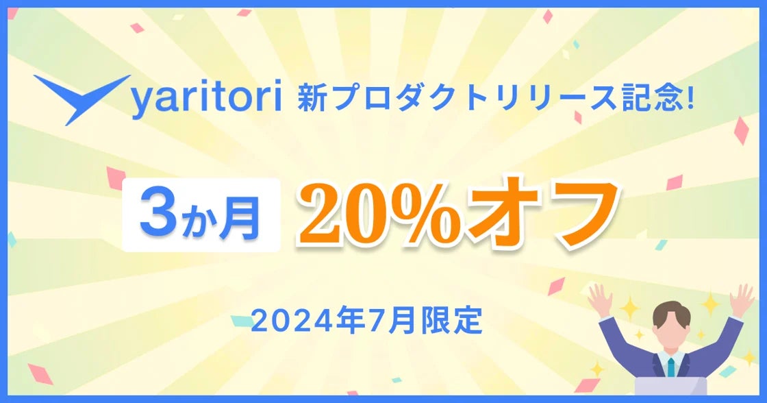 8月上旬頃にリリース予定の新プロダクト「yaritori メール配信」を記念して、もっと「yaritori」について知ってほしい!という想いから7月限定のお得な割引キャンペーンを実施しております!