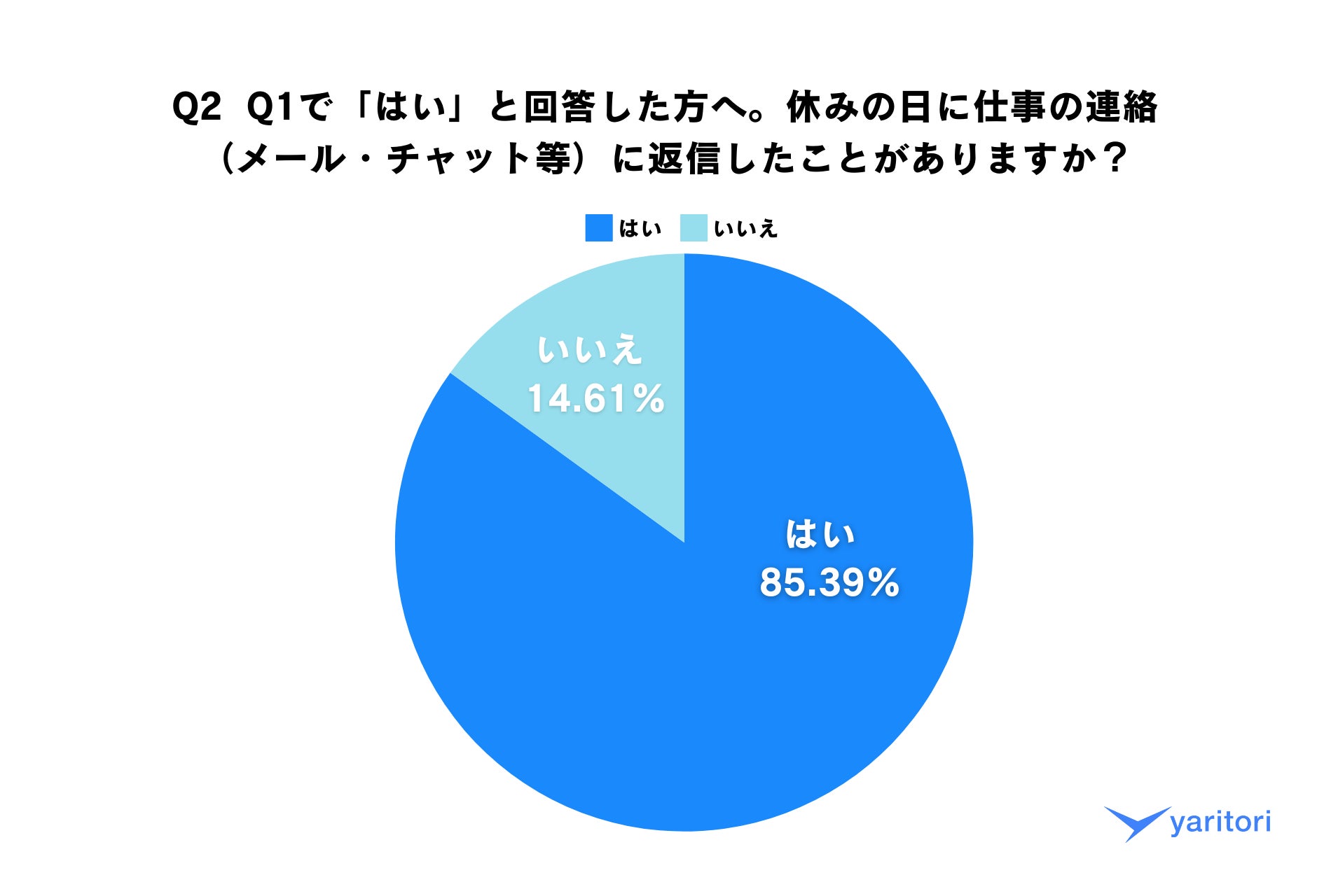 調査対象の2人に1人以上が休みの日に仕事の連絡を確認しており、そのうち8割以上は返信までしている