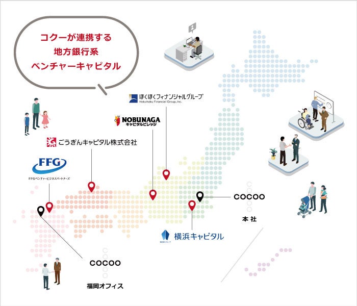 また、株式会社FFGベンチャービジネスパートナーズ(所在地:福岡県福岡市)、ほくほくキャピタル株式会社(所在地:富山県富山市)、横浜キャピタル株式会社(所在地:神奈川県横浜市)、ごうぎんキャピタル株式会社(所在地:島根県松江市)、4社の地方銀行系ベンチャーキャピタルを引受先とする第三者割当増資による資金調達を実施するとともに地域のDX推進、DX人財育成、雇用創出を目的に連携を強化。地方銀行のネットワークにより、地方自治体・地元企業とのマッチアップイベント、ネットワーキングイベントに多数参加し、業務効率化・生産性向上やDX人財不足等の課題解決に向き合ってまいりました。