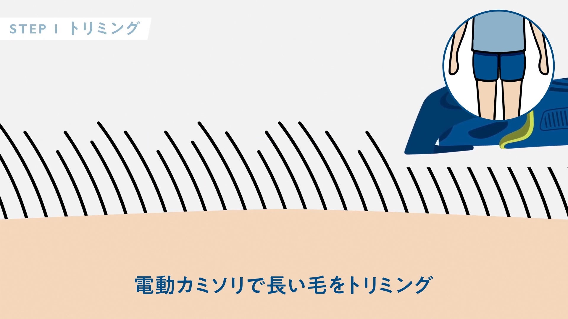 電動カミソリで毛のボリュームと長さを整えます