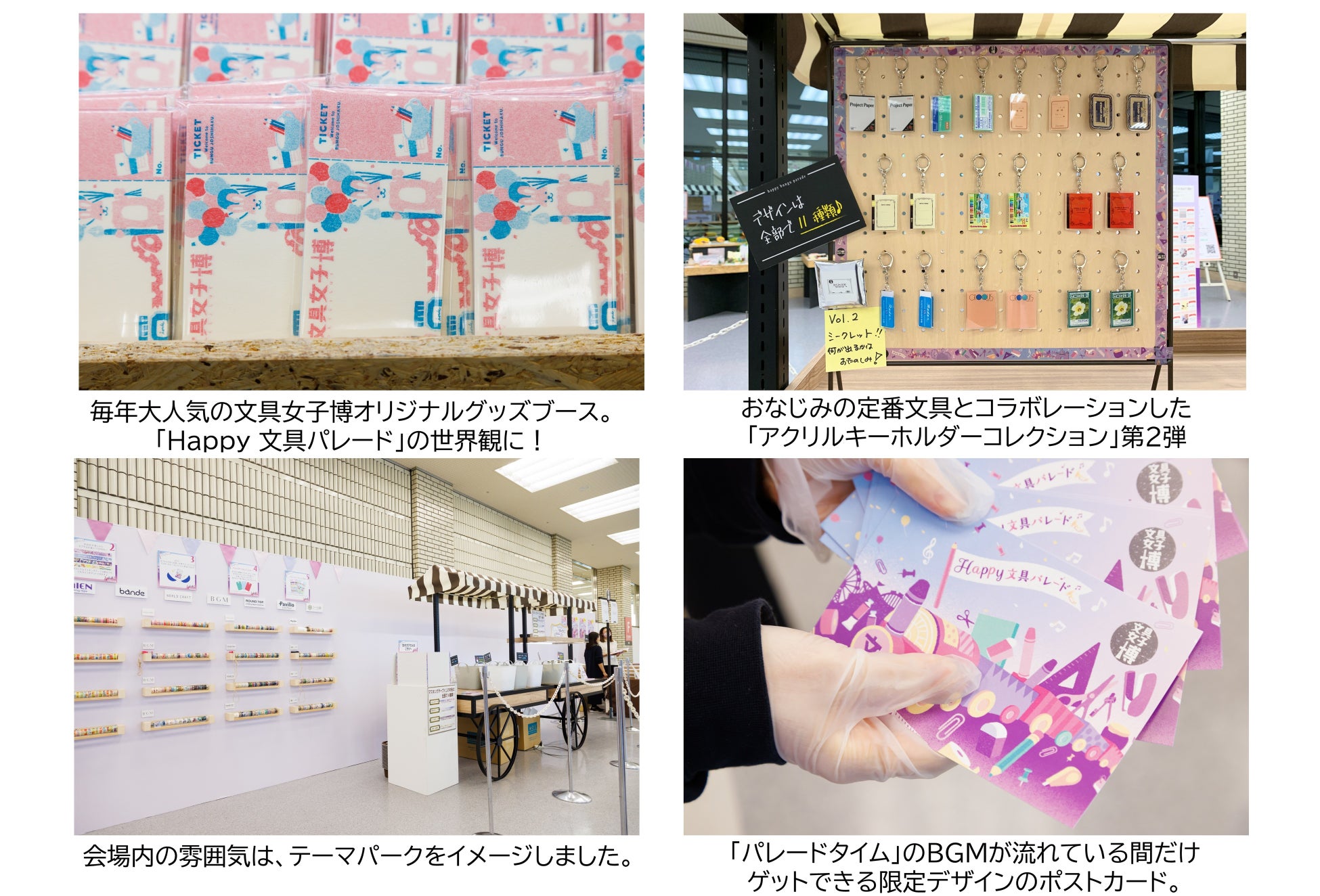 会場内では、「Happy 文具パレード」をイメージした各メーカーの限定商品や、ここでしか買えない文具女子博オリジナルグッズの販売などで特別感を演出。また、今回初めて実施をした「パレードタイム」では限られた時間内でしかゲットできないオリジナルのポストカードの配布を行い、多くのお客様に楽しんでいただきました。