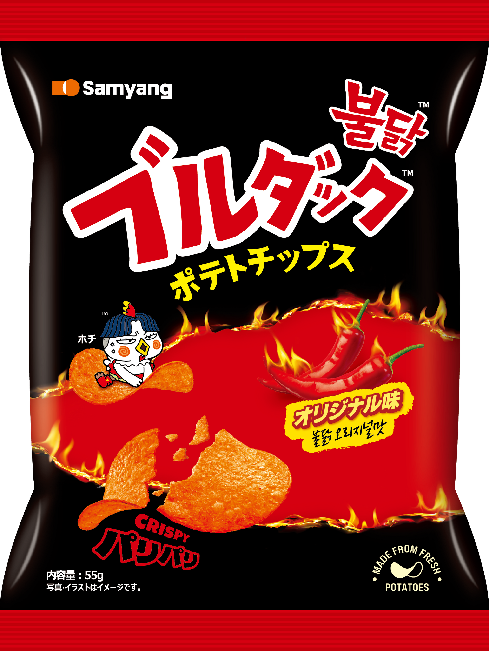韓国発『ブルダックポテトチップス』が新登場!「辛すぎ!でも旨すぎ!」のブルダック炒め麺シリーズより、カテゴリーを拡大