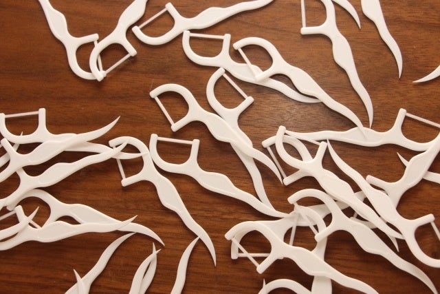 使い捨てのプラ製Y字フロスは1本2g程度で