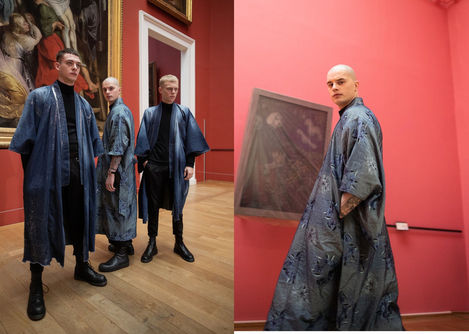 ファクトリーブランド「AOKI DENIM」のディレクターでもある青木俊樹は、日本の伝統衣装である着物、羽織、法被を、日本のデニム技術と英国のファッション美学を融合し、新たな和モダンの提案を行なっていきます。