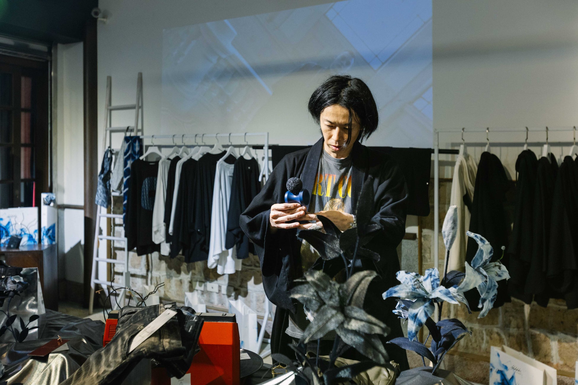 加工感や表現力が視覚で伝わるデニム製品は国内外の著名ARTISTのステージ衣装としても採用されるに至っている他、近年では素材を活用した空間プロデュースも手がけている。