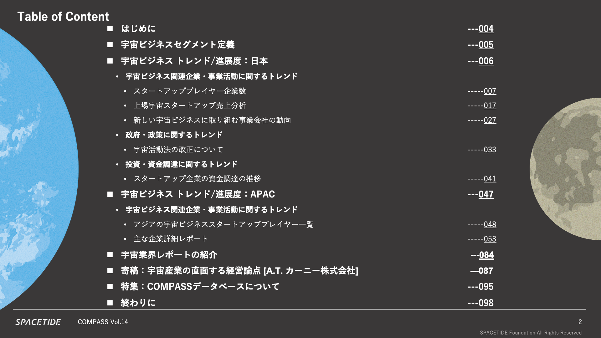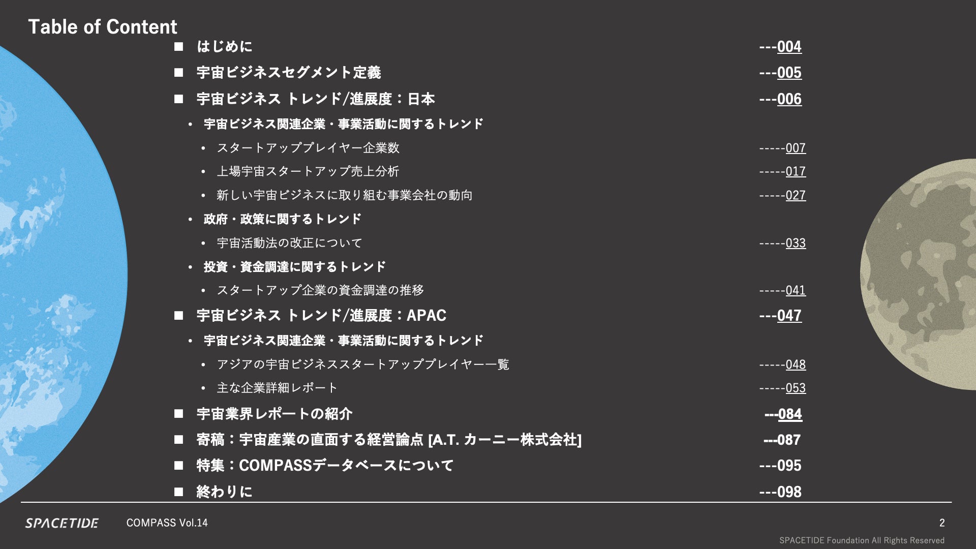 日本・アジアの宇宙ビジネスの潮流を示す業界レポート「SPACETIDE COMPASS Vol.14」を発刊