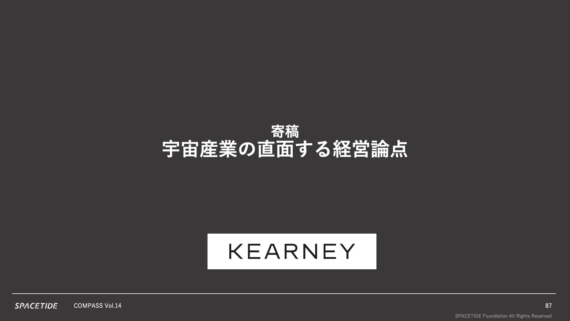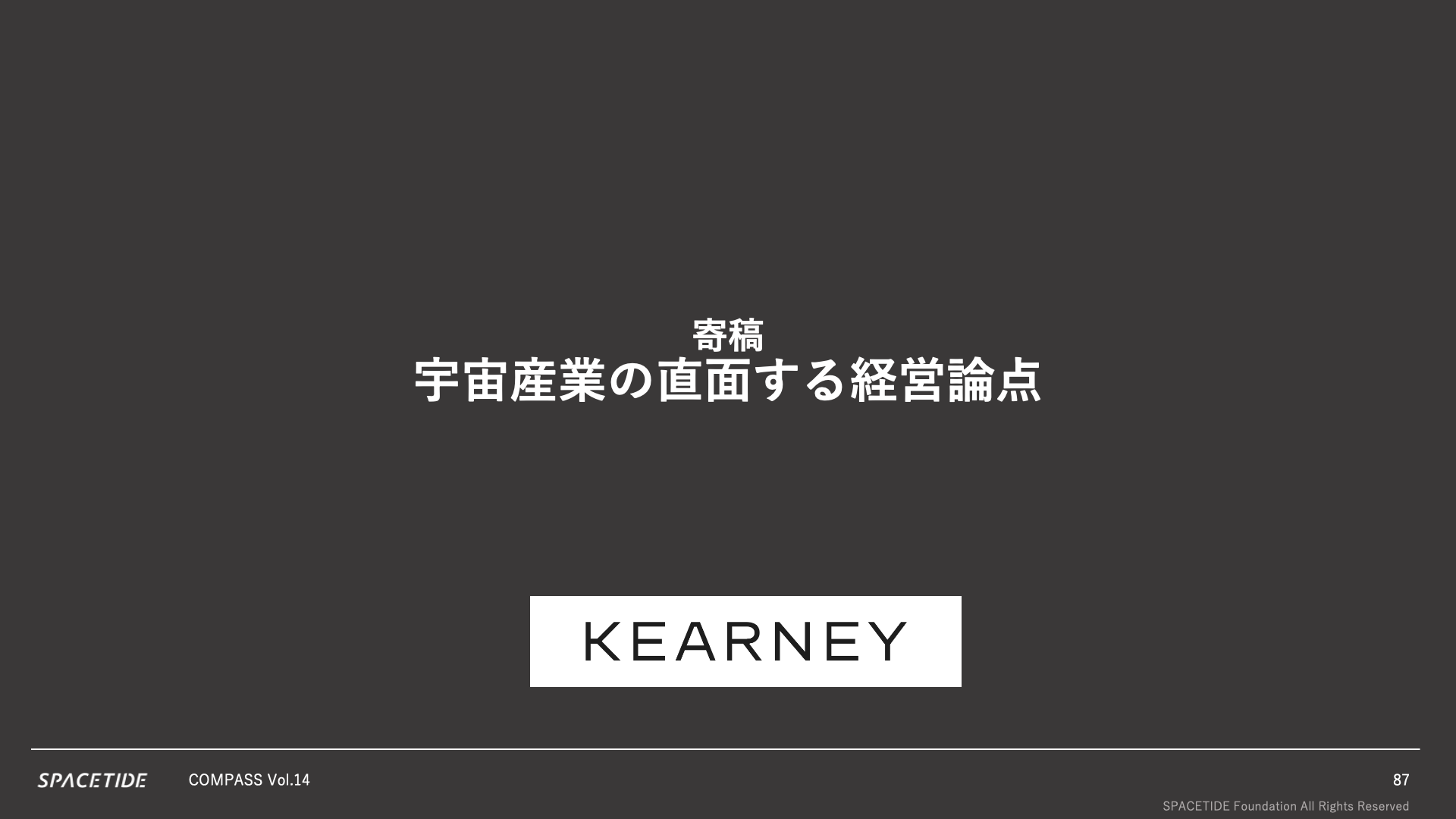 SPACETIDE COMPASSが初めて発刊された2016年当時、宇宙産業はまだ黎明期にありました。しかし現在では、宇宙は国家政策の中核であり、多くの民間企業にとっても重要な戦略テーマの一つとなっています。こうした変化を受け、SPACETIDE COMPASSにはより、柔軟で多様かつ高度な分析が求められています。今回、日本の宇宙産業の中核的な存在となりつつある宇宙戦略基金についての特集を行い、さらにA.T. カーニー様の知見をいただき、これまで十分に取り上げられていなかった『企業経営』の観点から新たな価値を提示することができました。今後もSPACETIDE COMPASSを通じて官民さまざまな立場で加速する宇宙ビジネスをわかりやすく伝えてまいります。