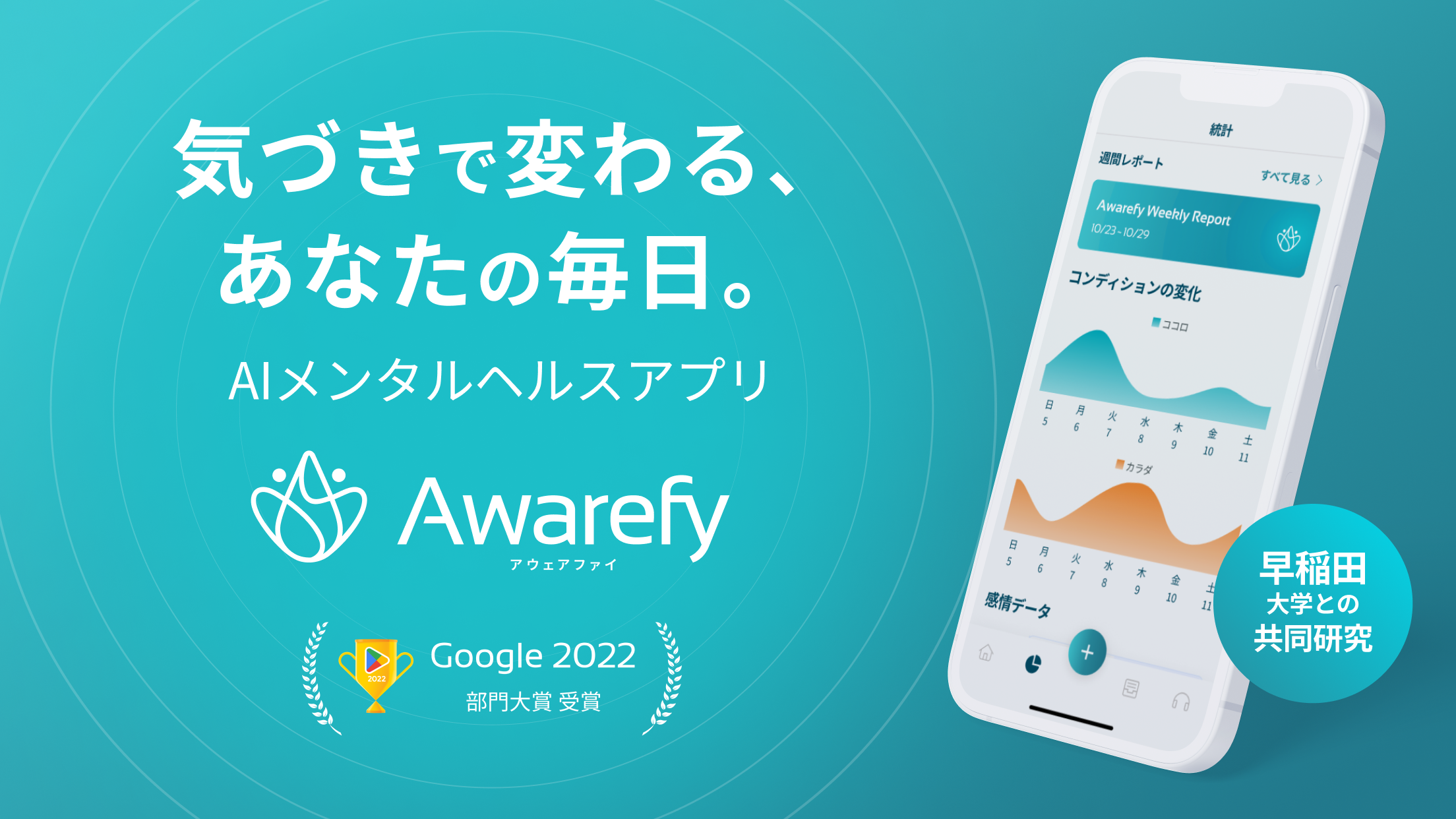Awarefyは「気づきで変わる、あなたの毎日。」をコンセプトとしたスマホアプリです。