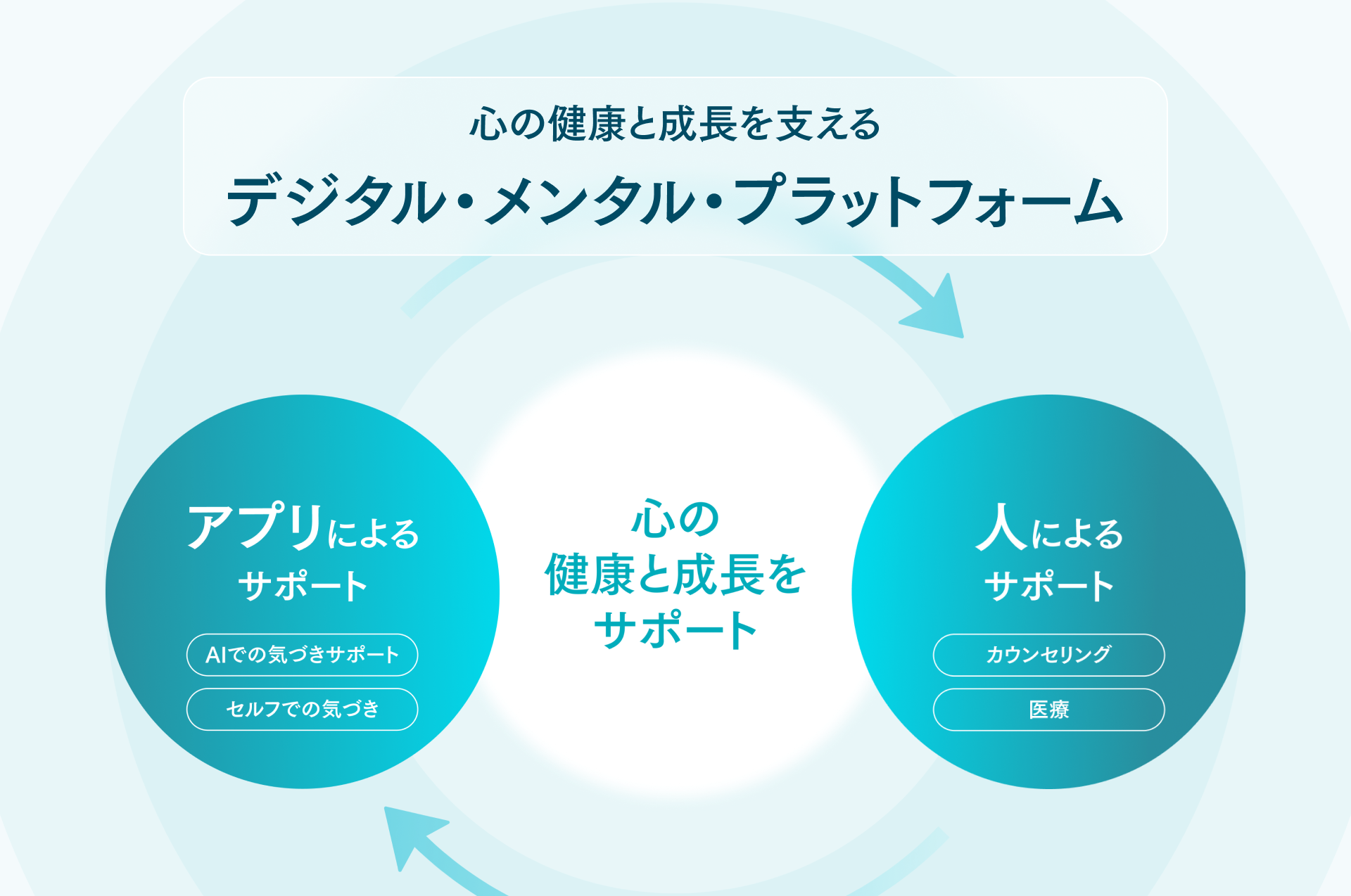 また、心の健康と成長を支えるデジタル・メンタル・プラットフォームのインターフェースを担うべく、メンタルクリニックへの接続や公共の相談窓口の案内等専門機関との連携も進めています。