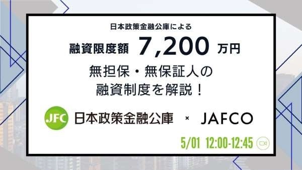 【日本政策金融公庫×JAFCO】日本政策金融公庫による融資限度額7,200万円・無担保・無保証人の融資制度を解説するウェビナーを開催
