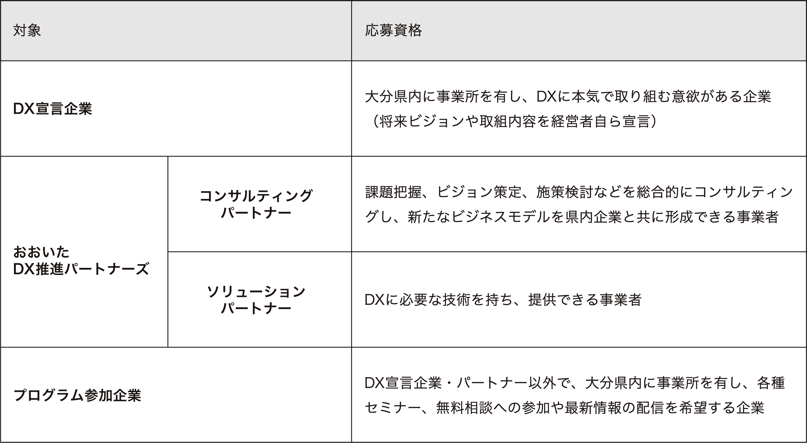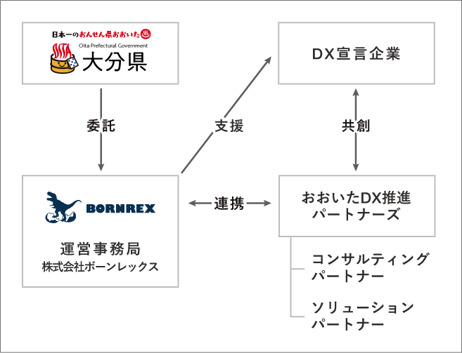 本事業では、DXを支援するパートナー事業者と共に、大分県内に事業所を有する企業のビジネスの変革をサポートいたします。