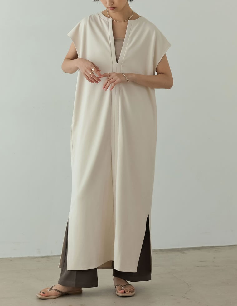 [低身長/高身長サイズ有]カルゼ深Vネックカフタンワンピース