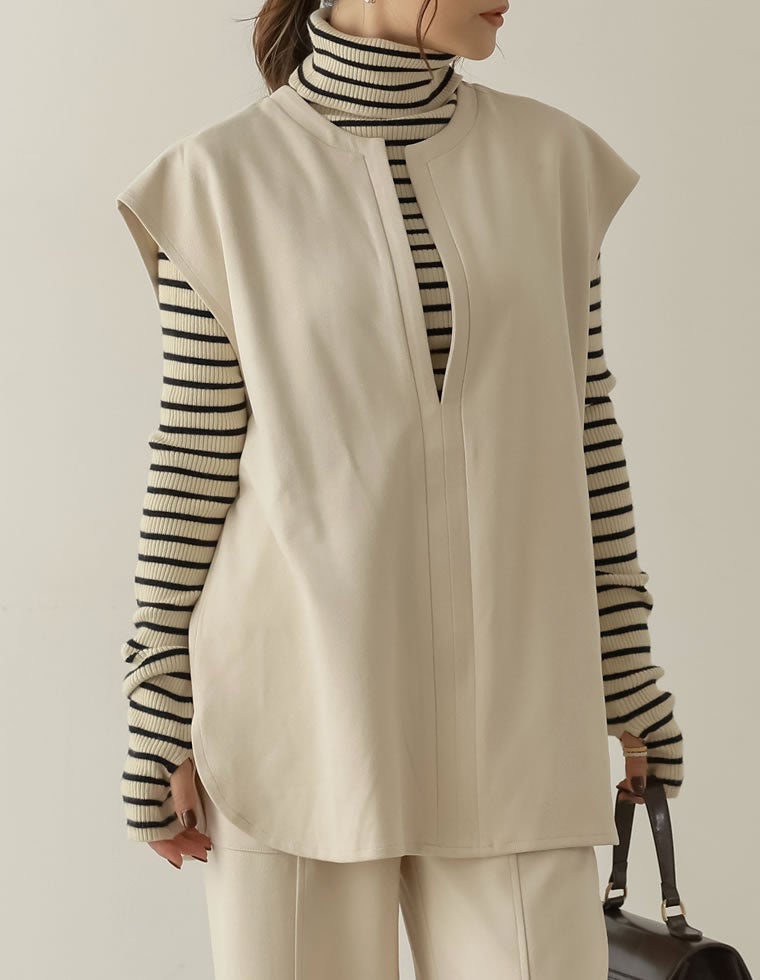 カットカルゼ生地は、しっとりと滑らかな起毛感と、程よくハリ感のある風合いが特徴です。秋冬シーズンはもちろん、インナーの合わせ方などで、長くご愛用いただけます。まるでウールのような暖かみのある生地が、洗練された大人の魅力を引き立てます。ベストとパンツはセットアップとしても取り入れていただけます。お出かけにはもちろん、ワンマイルコーデにもご着用いただけ、お家でお手入れできるのも魅力です。