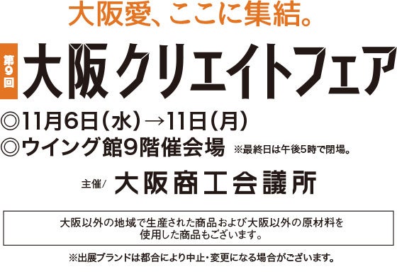 大阪ゆかりのすてきなもの集合! 「第9回大阪クリエイトフェア」11月6日(水)~11月11日(月)まで開催