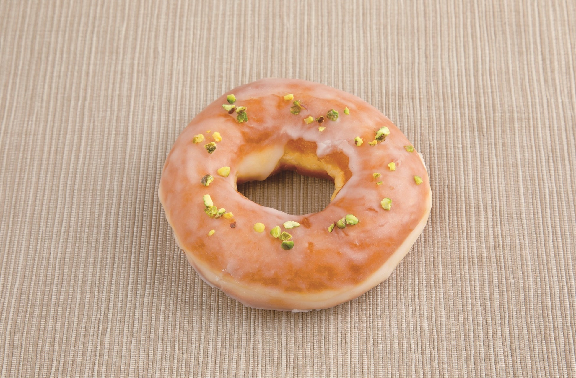 はちみつシュガーグレーズをコーティングしたふわふわのドーナツにピスタチオをトッピング。