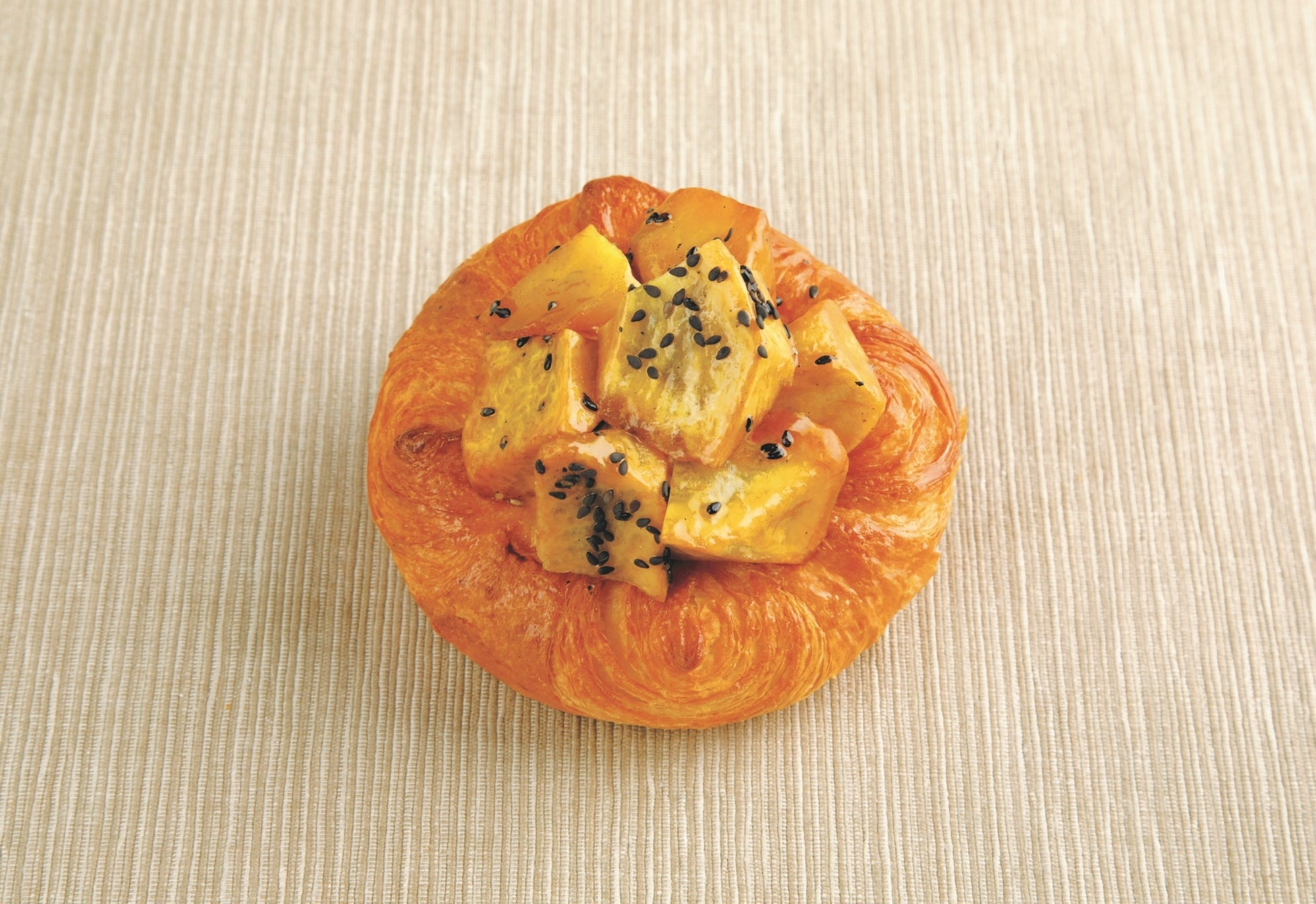 サクサクのデニッシュにカスタードクリームとホイップクリームを詰め、蜜がたっぷり絡んだ大学芋をごろっとトッピング。ホクホクの大学芋が存分に味わえる秋のデニッシュ。