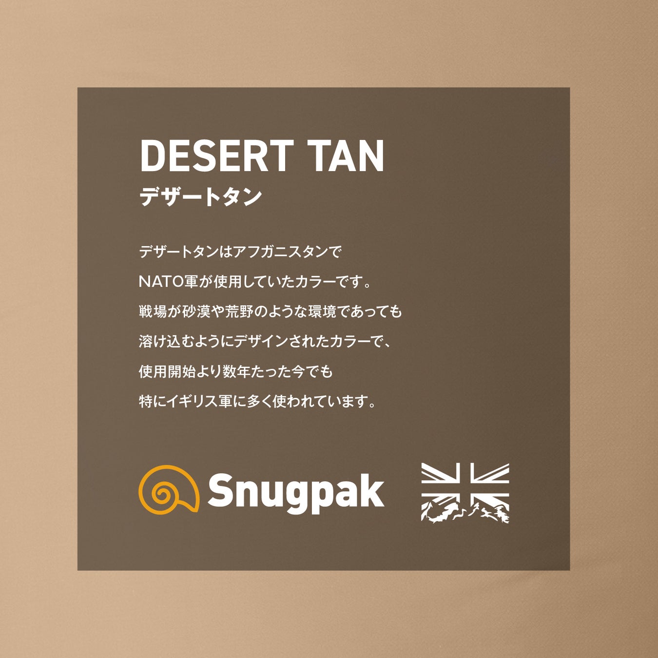 イギリスのウエストヨークシャーに製造⼯場を構え、究極の環境下で機能するアウトドアギアを世界中に送り出していま す。同業のイギリス⼯場が次々閉鎖していく時代の中、Snugpakはただ頑なに「本当に強い」寝袋と上着だけを作り続 ました。世界各地の軍隊が正式採⽤していることが、その強さの証明です。今ではSnugpakはイギリス国内製造⼯場の最後の砦となりました。それを何より誇りに思います。英国職⼈の技術、クイーンアワードの栄誉 、先代から受け継いだ夢。ここまでの道のりを繋いだ全てを⼒に、Snugpakは戦い続けます。