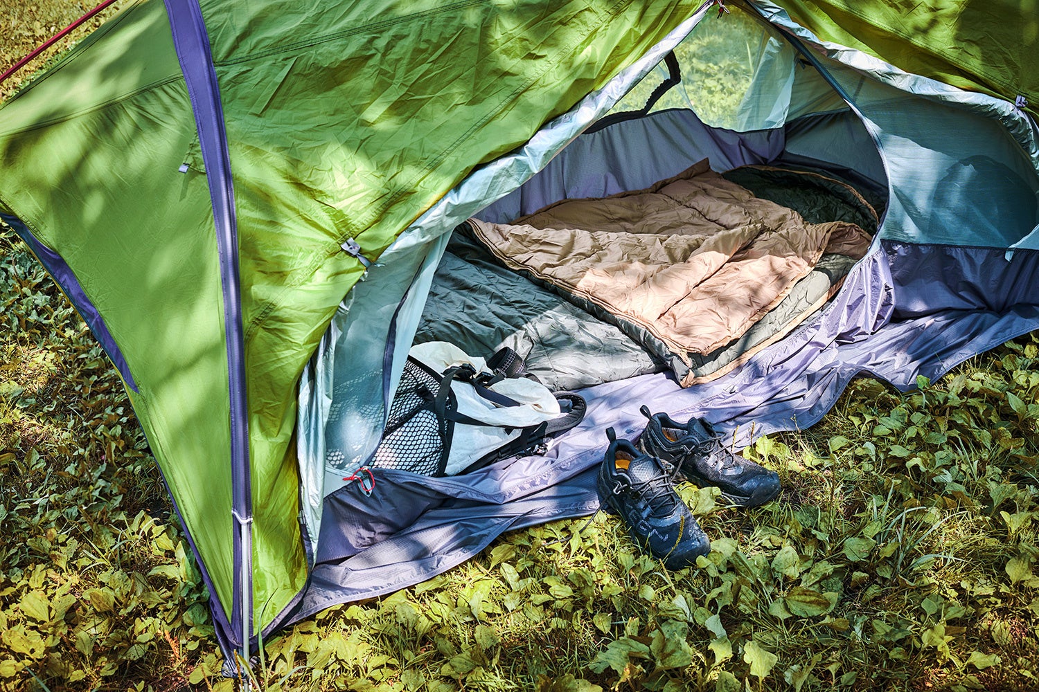 寝袋の背面には、マットを差し込むポケットがついており、就寝中に寝袋とマットがずれるのを防ぎます。