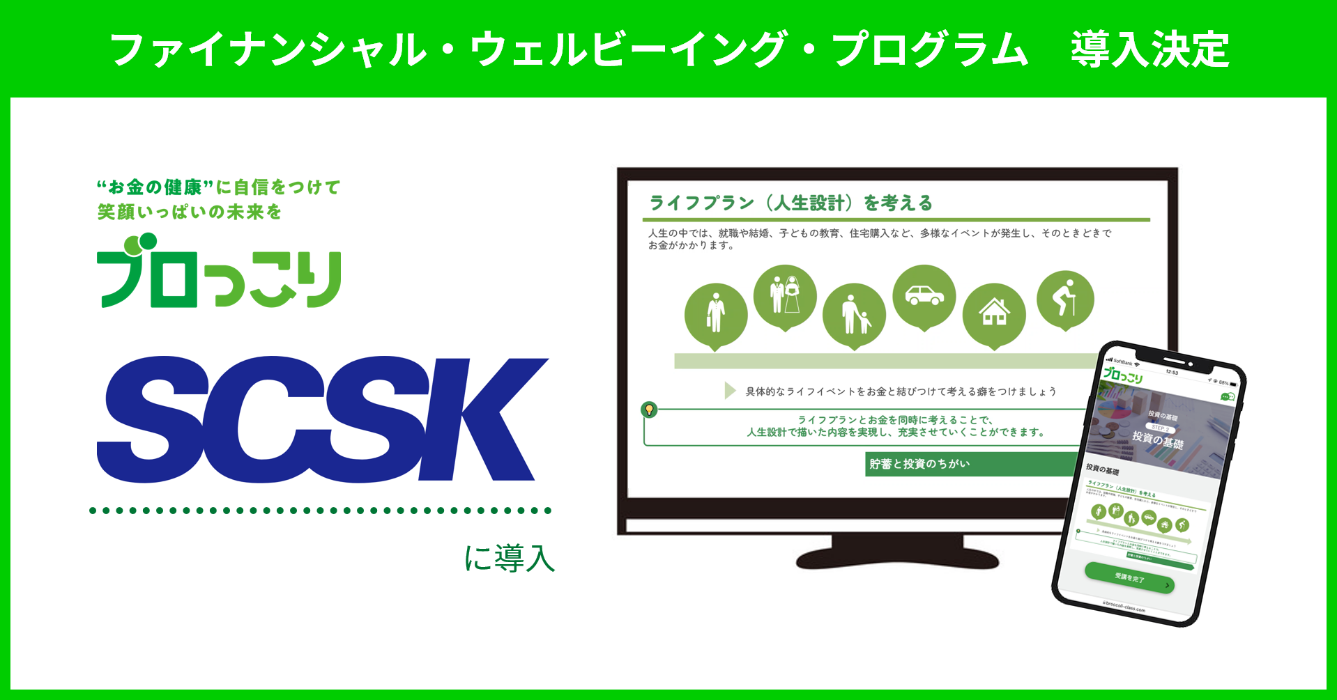 「金融の力を解き放つ」をパーパスに掲げ、保険・証券・住宅ローンと複数の金融商品を横断して1社で取り扱い、人々のライフプラン実現をサポートするブロードマインド株式会社(本社:東京都渋谷区 代表取締役社長:伊藤 清 証券コード:7343 以下、当社)は、この度、SCSK株式会社(本社:東京都江東区 代表取締役 執行役員 社長 最高執行責任者:當麻 隆昭 証券コード:9719 以下、SCSK)に対し、従業員のファイナンシャル・ウェルビーイング(=経済的な幸せ)の実現を支援する金融教育プログラム「ブロっこり」の提供を開始することをお知らせいたします。