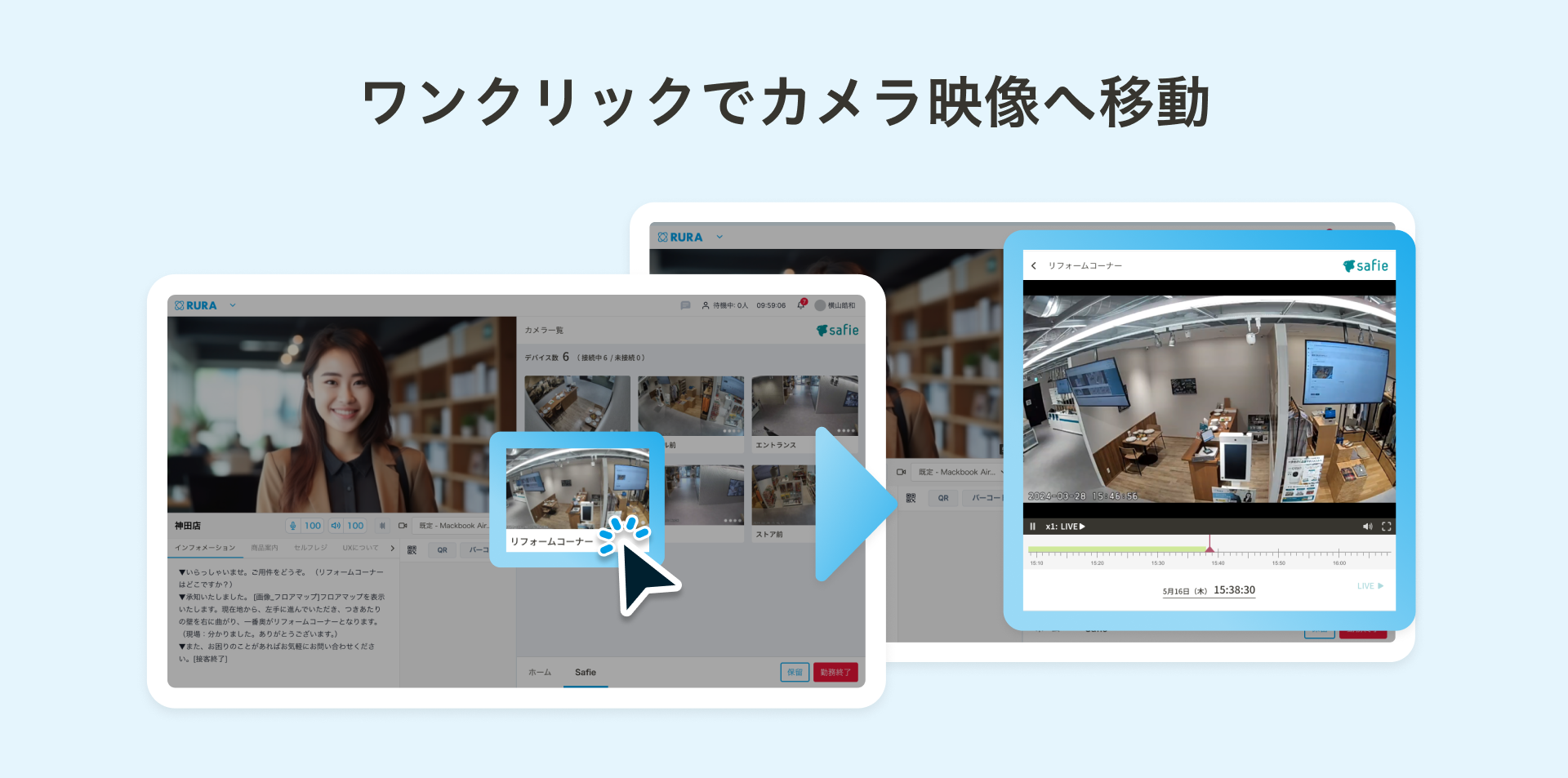 遠隔接客サービス「RURA」、クラウド録画サービス「Safie」の映像を閲覧できる機能をリリース