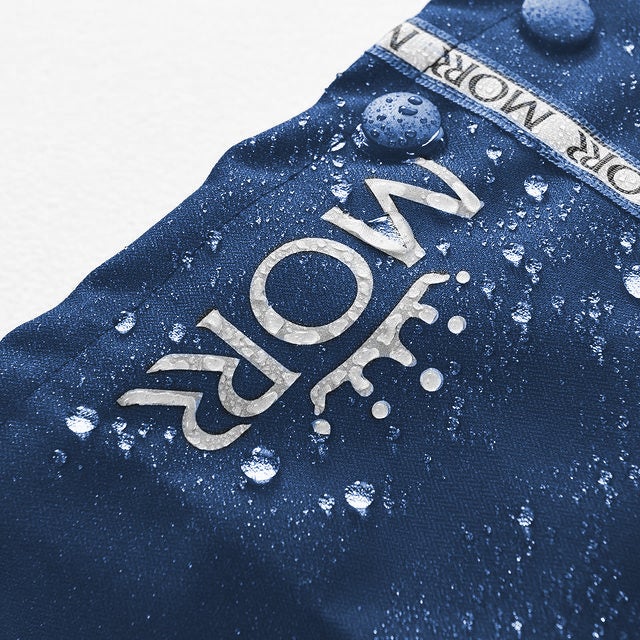 雨は生地に染み込まず玉となって流れ落ちるので、雨の日に自転車に乗ってお腹の部分に水が溜まってしまうことも無くなります。