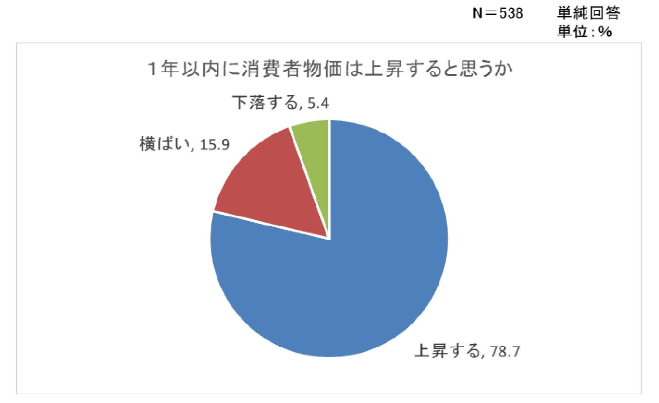- 消費者への影響拡大:「今後、消費者物価上昇」78.7%