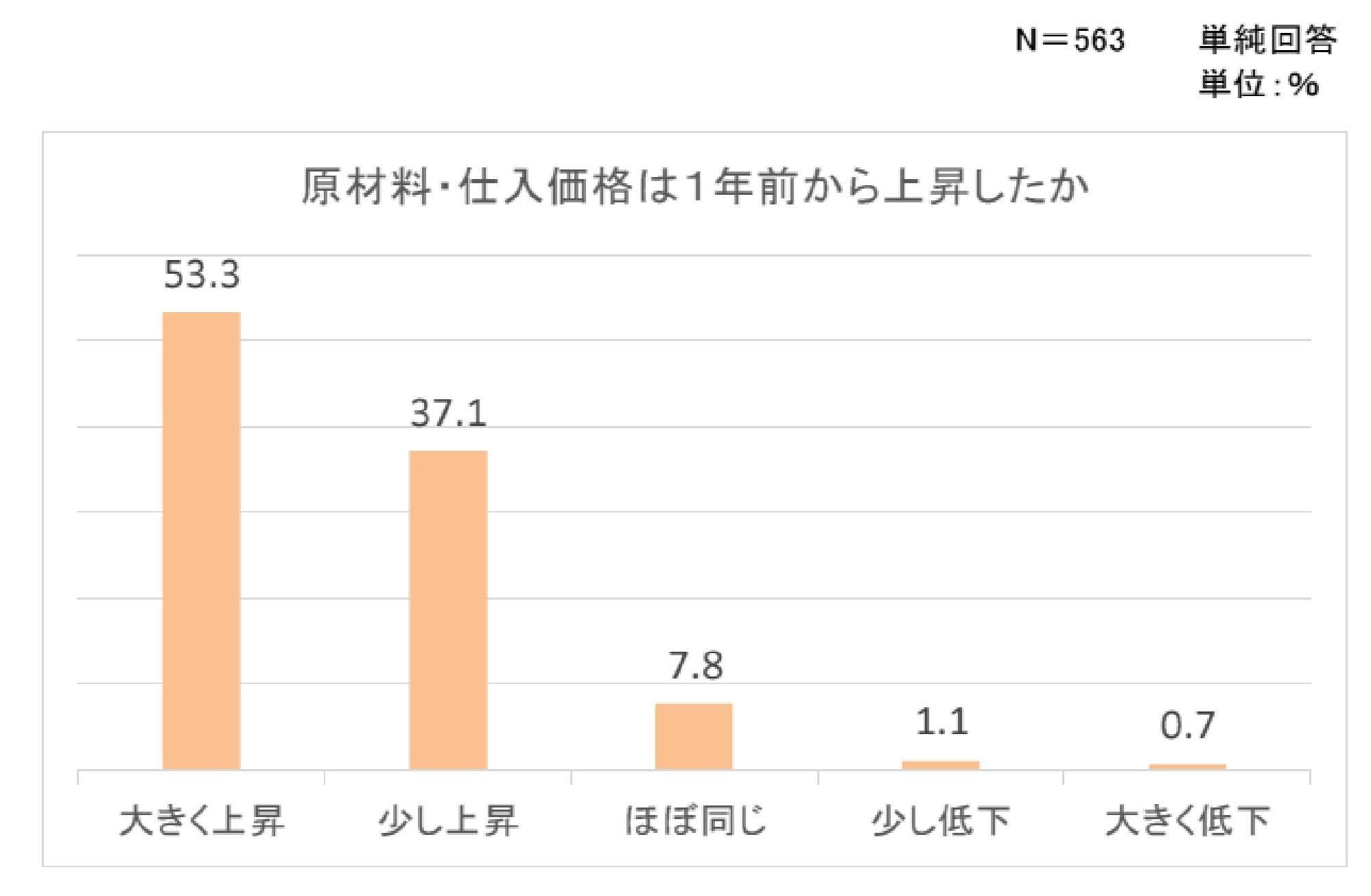 - 仕入価格上昇!業績は下降:1年前から「上昇した」90.4%