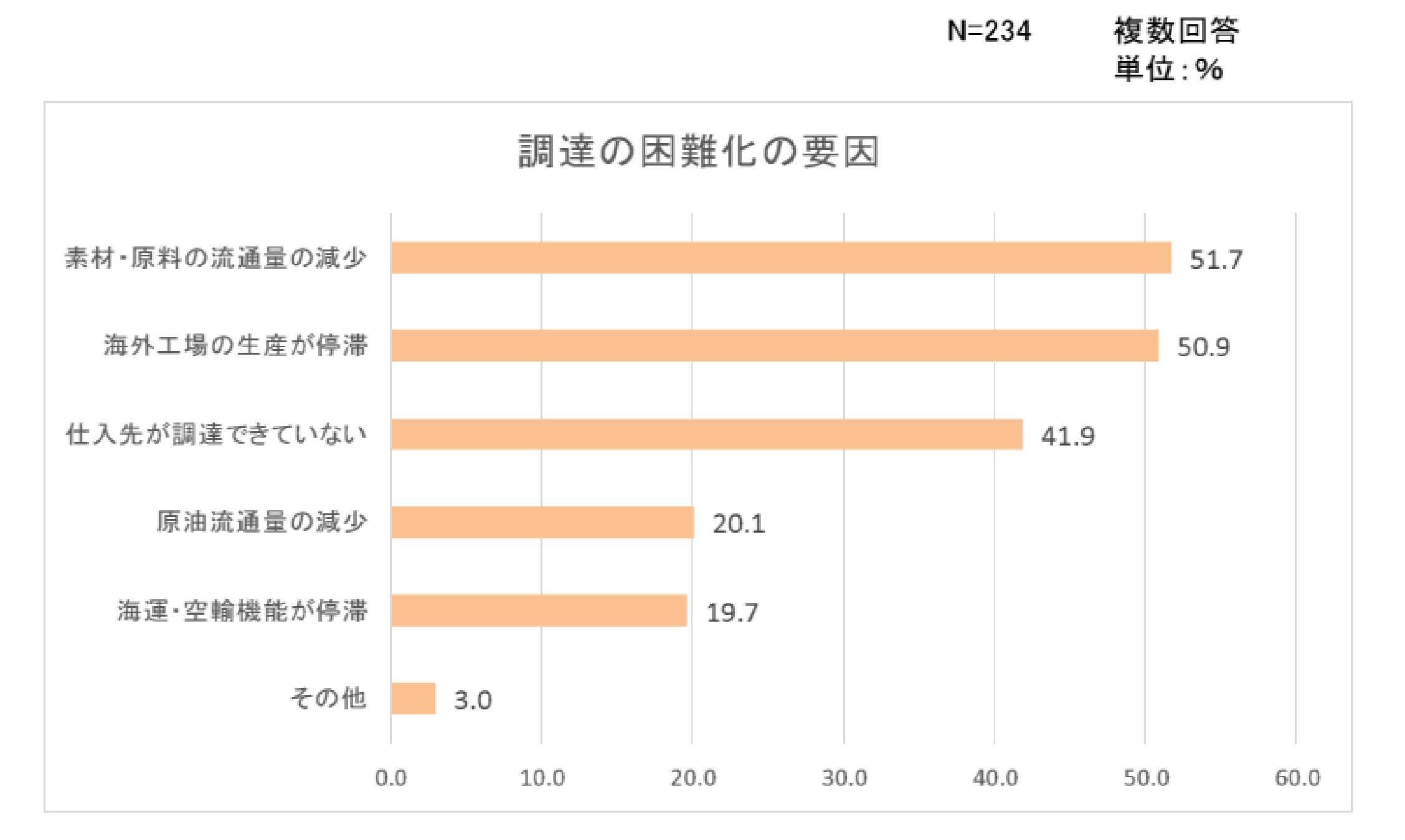 - サプライチェーン機能せず:「仕入・調達に障害あり」48.0%