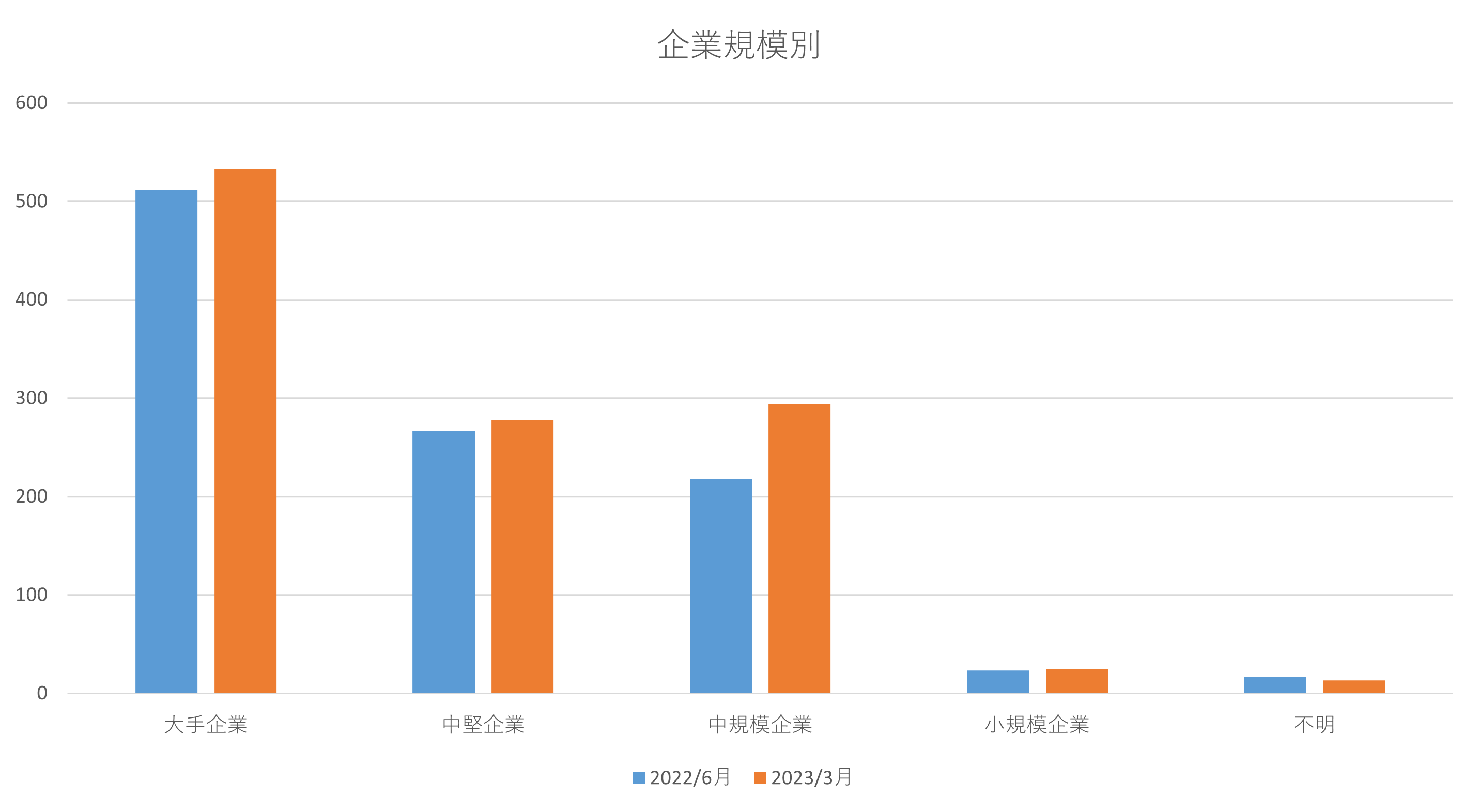 規模別では、大手企業が一番多く、次いで中規模企業の割合が多いです。