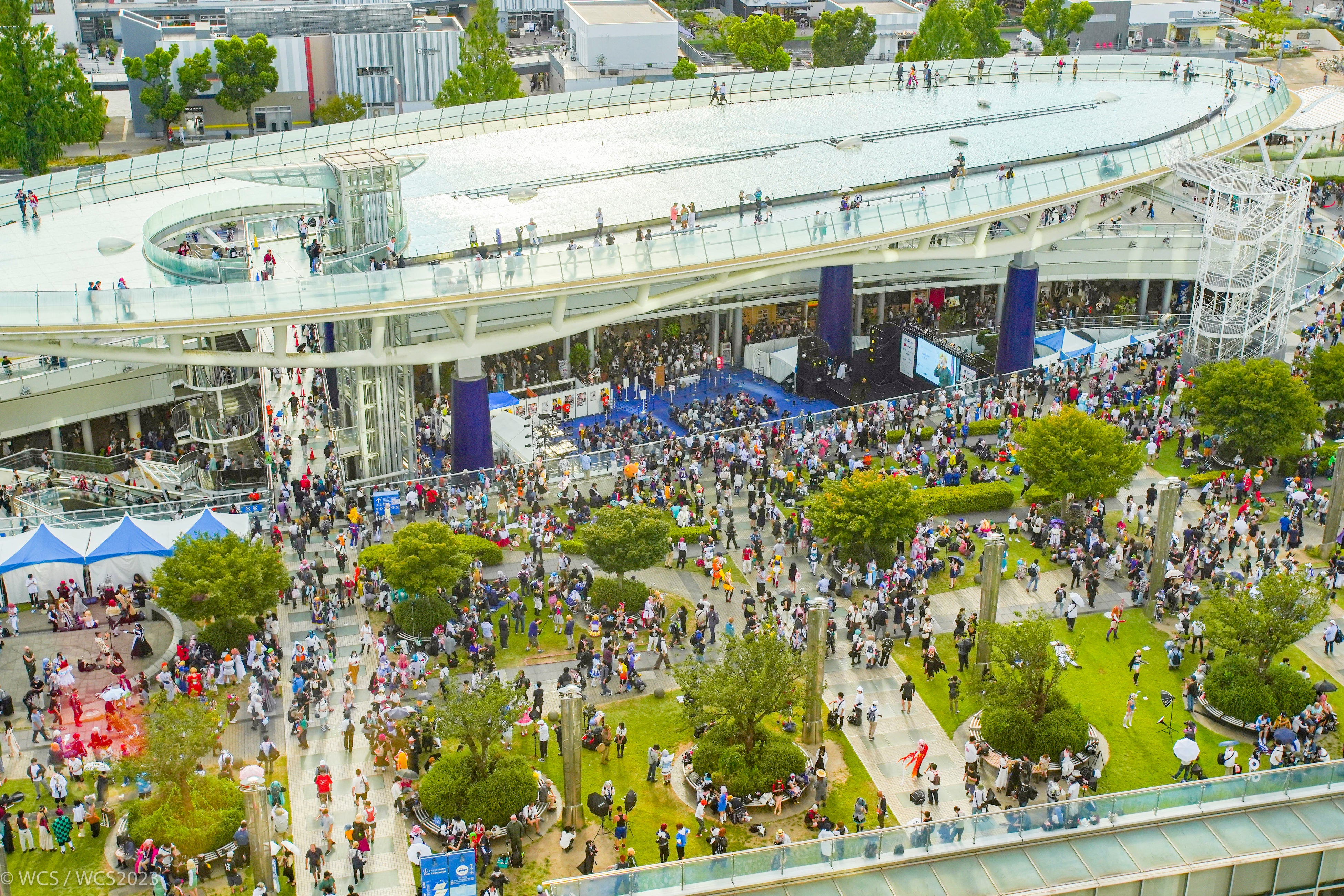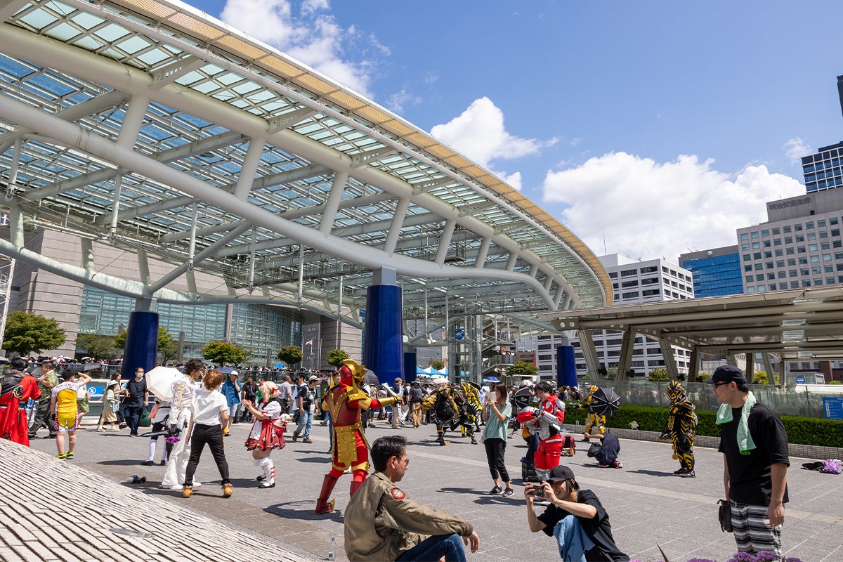 名古屋市栄の中心に位置する複合施設・オアシス21は、世界コスプレサミットのメイン会場です。「水の宇宙船」と呼ばれるこの施設は、ステージプログラムからコスプレに関するブース出展エリアまで、1日中楽しめるスポットです。特に「緑の広場」では、毎年たくさんのコスプレイヤーたちが交流し、撮影を楽しむ場となっています。