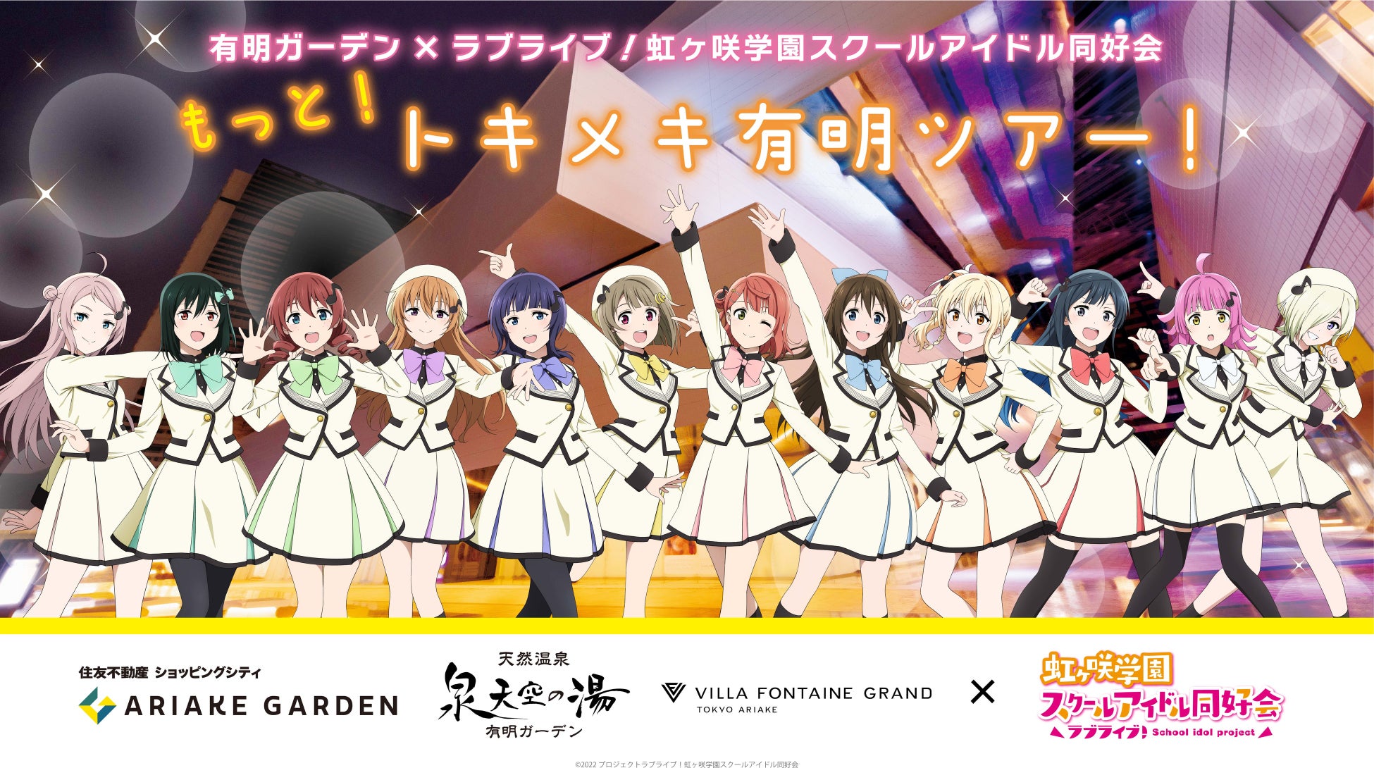 2022年1月にスタートした大好評コラボ企画「有明ガーデン×ラブライブ!虹ヶ咲学園スクールアイドル同好会 トキメキ有明ツアー!」に新たな企画を加え、2022年9月1日(木)より『有明ガーデン×ラブライブ!虹ヶ咲学園スクールアイドル同好会 もっと!トキメキ有明ツアー!』を開催いたします。