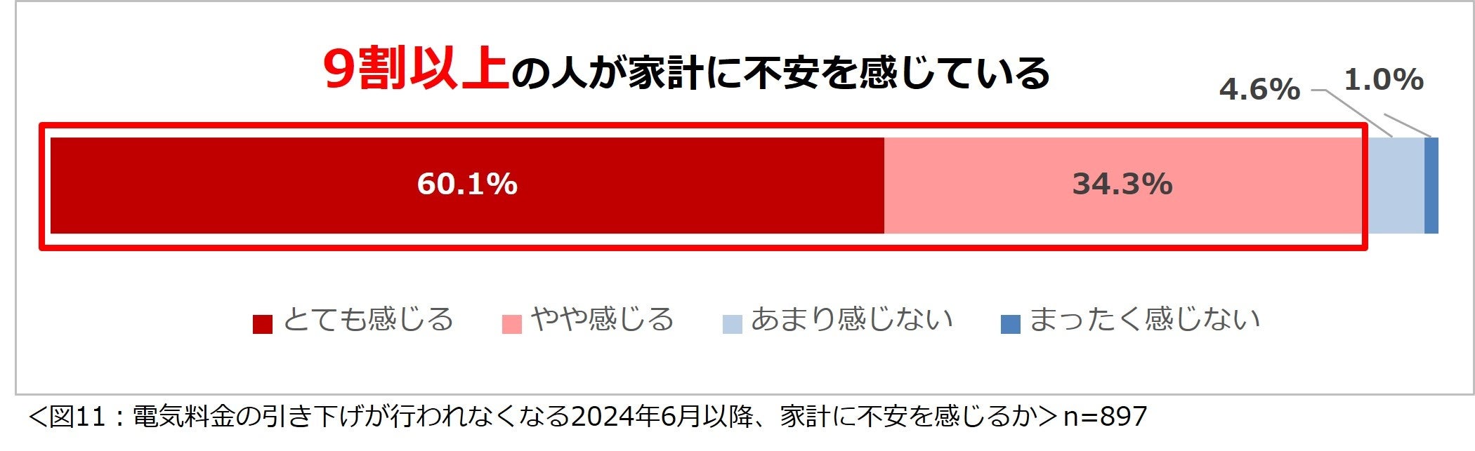 ■9割以上の人が、電気料金の引き下げが行われなくなる2024年6月以降、家計に不安を感じている。