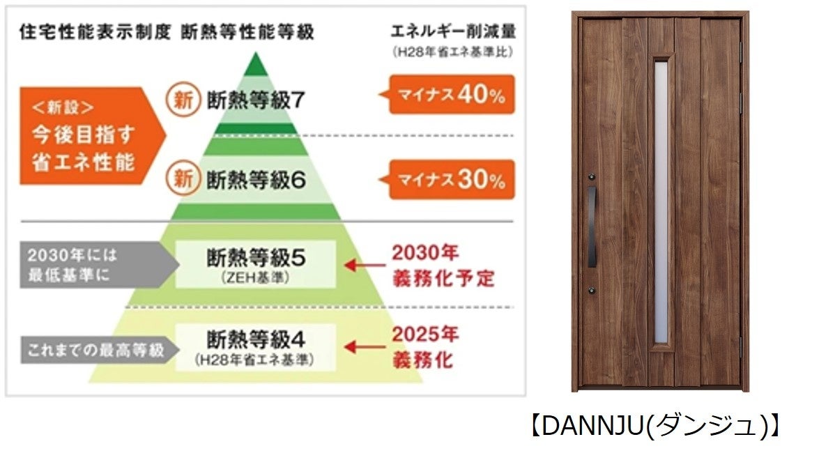 断熱等級7の早期対応を可能にした、超断熱玄関ドア「DANNJU(ダンジュ)」は、「2023年度 省エネ大賞(製品・ビジネスモデル部門)」において、「省エネルギーセンター会長賞」を受賞しています。