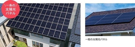 一条工務店は、業界最高水準の高出力太陽光パネルを大容量搭載し、同じ面積で約 1.2 倍もの出力を実現。日射が少ない朝夕の発電もしっかりサポートします。また、自社グル―プ工場で生産するため、太陽光パネルの面積を建物規格寸法に合わせることができます。その結果、一般的な後載せタイプの太陽光パネルと比べ、大容量搭載が可能です。一条工務店は「最新年間で最も多くの太陽光搭載住宅を建てた会社」として4年連続でギネス世界記録™(※2)の認定を受けています。
