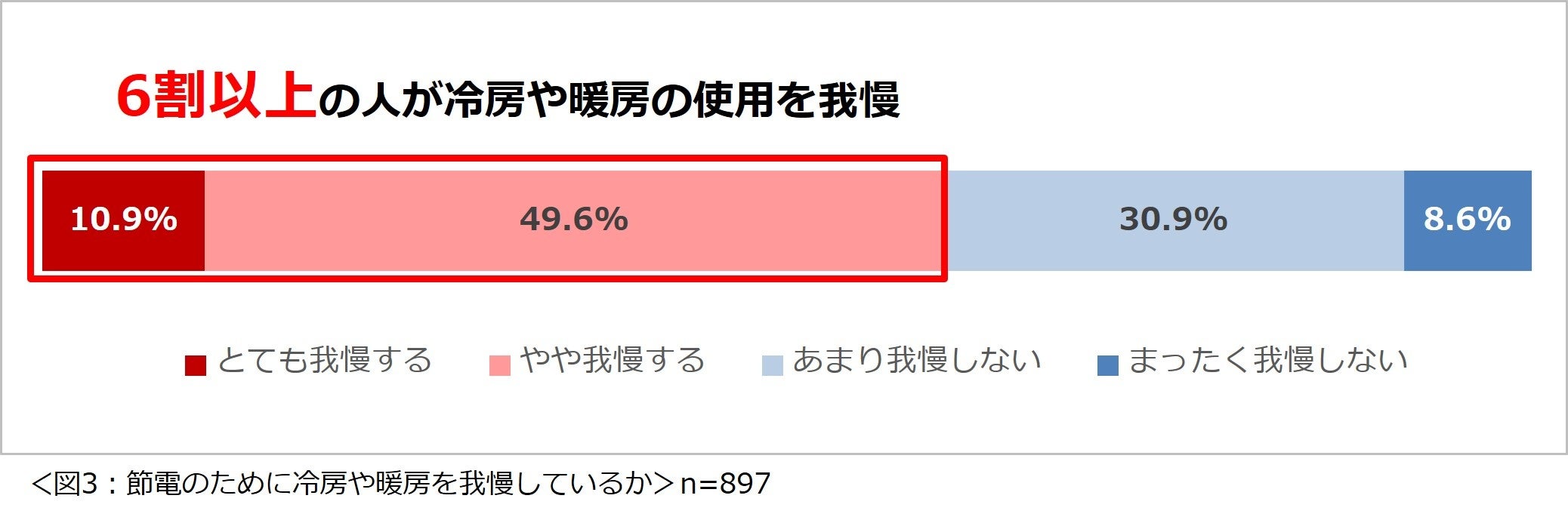 6割以上の人が節電のために冷房や暖房を我慢している。