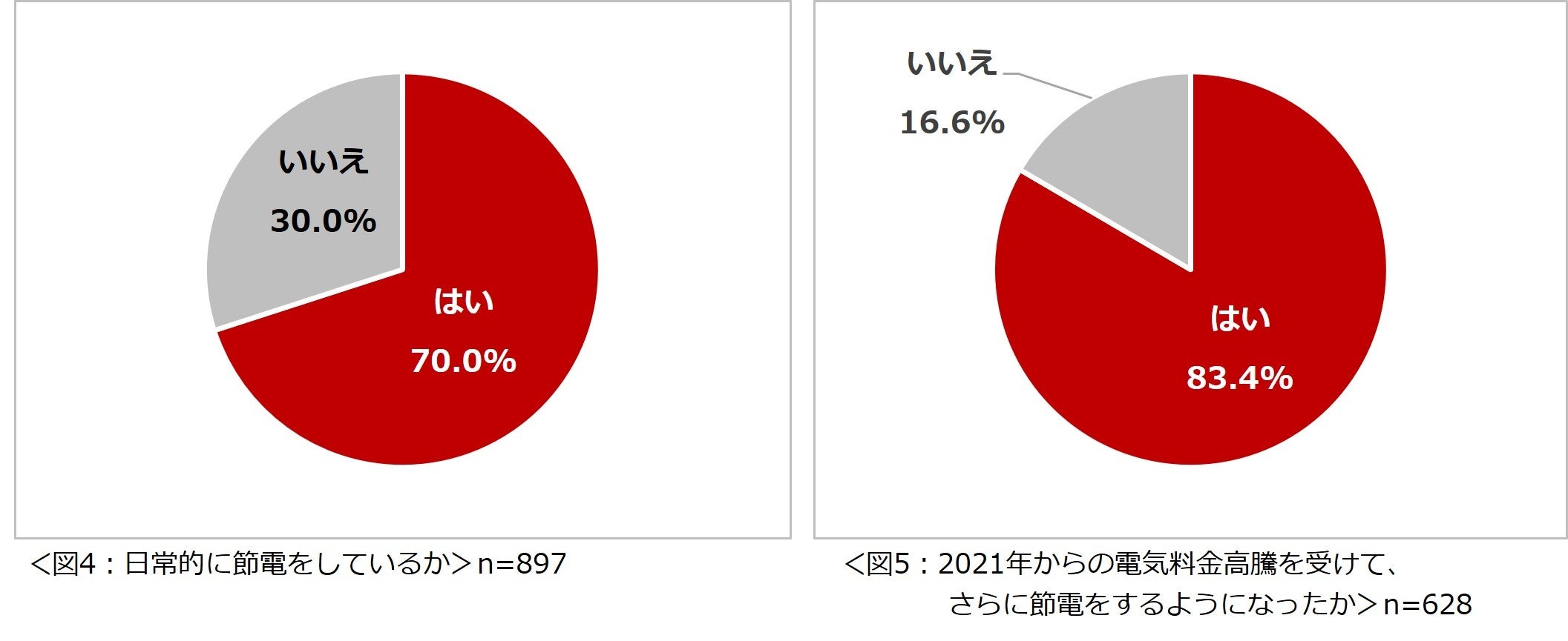 そのうち8割以上の人が、2021年からの電気料金高騰を受けて、さらに節電をするようになったと回答。