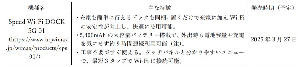 WiMAX、モバイルルーター「Speed Wi-Fi DOCK 5G 01」を2025年3月27日に発売