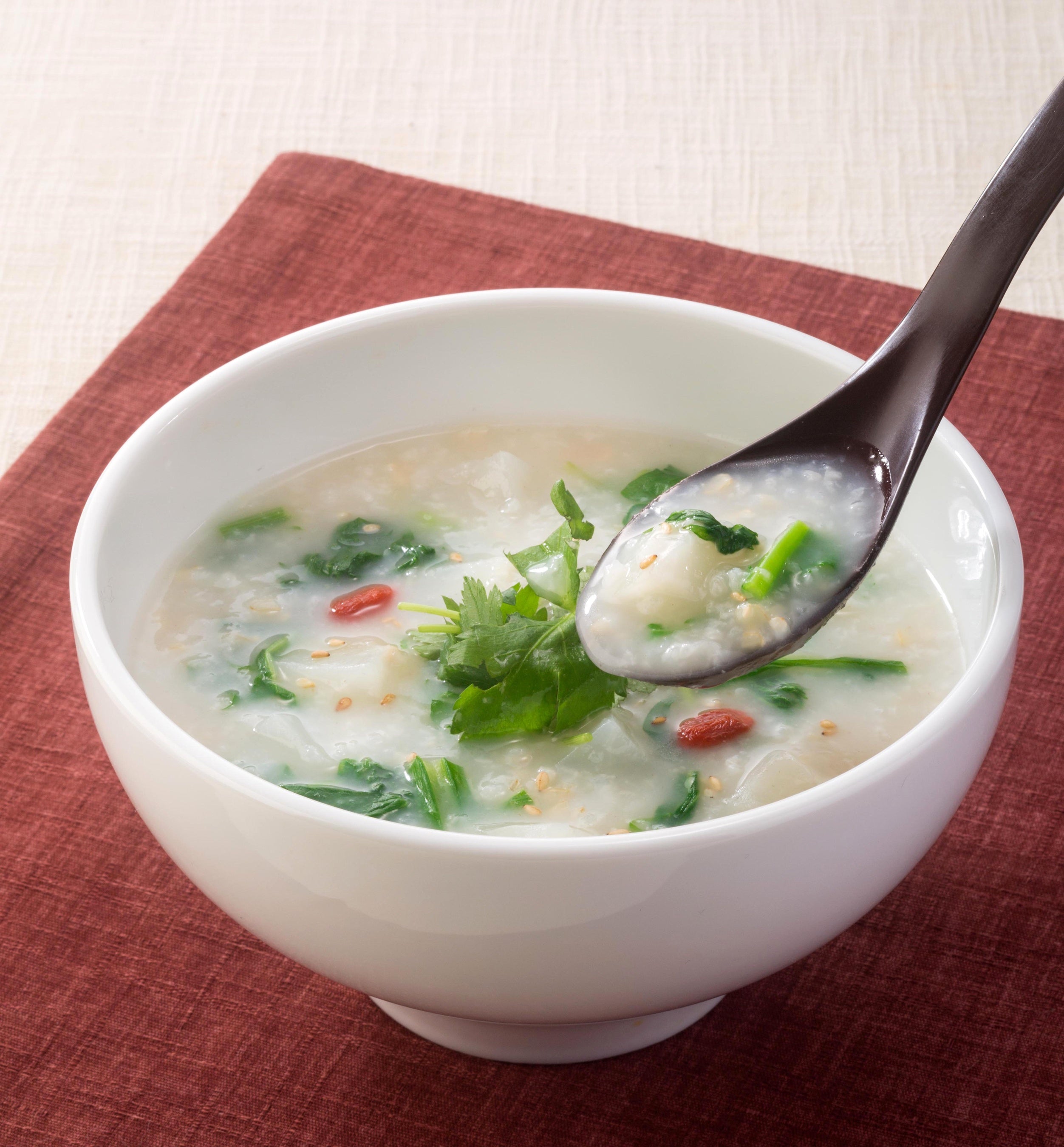 「粥餐庁」のおかゆは、1967年創業、医食同源の哲学を大切にした本格中国料理「謝朋殿」から受け継いだ、“からだを内側から元気にする”本格中華粥。中国では医食同源の思想の下、体を温めることが健康につながると考えられており、毎朝熱々の自家製スープ※で生米から毎日じっくり炊き上げる栄養豊富でうまみたっぷりの生姜入りのおかゆは、食べることで体を内側からゆっくりやさしく温めてくれます。
