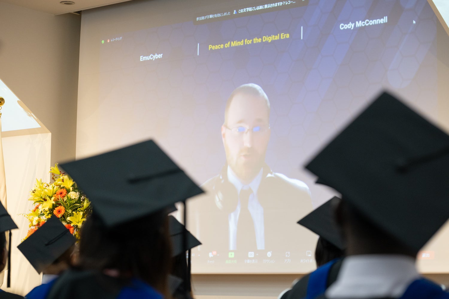 アメリカからオンラインで出席したCody McConnell氏(アメリカ出身)は「私たちは、成長を止めてはいけません。そして、努力を怠ってはいけません。MBAプログラムを通じて得たものを活かし、何かを成すべきです。何を成すべきなのか、どのように果たすべきなのか、それは、あなただけが知ることです。しかしそれが何であれ、あなたが中心なのだということを忘れないでください。あなたが今日の素晴らしいあなたに至るまでに学んだことを、ぜひ活かしていきましょう」と前進し続けるよう励ましました。