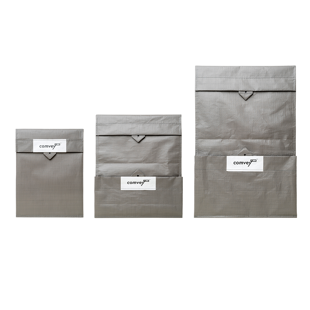 LAEMUSEでは配送サービスに、「リユースでサステナブルな購入体験を」がコンセプトの「comvey(コンベイ)」を採用。商品購入時に選択できる「シェアバッグ」は、ポストに返却可能。ECにおける梱包ごみの課題にブランドファンと一緒に取り組みます。