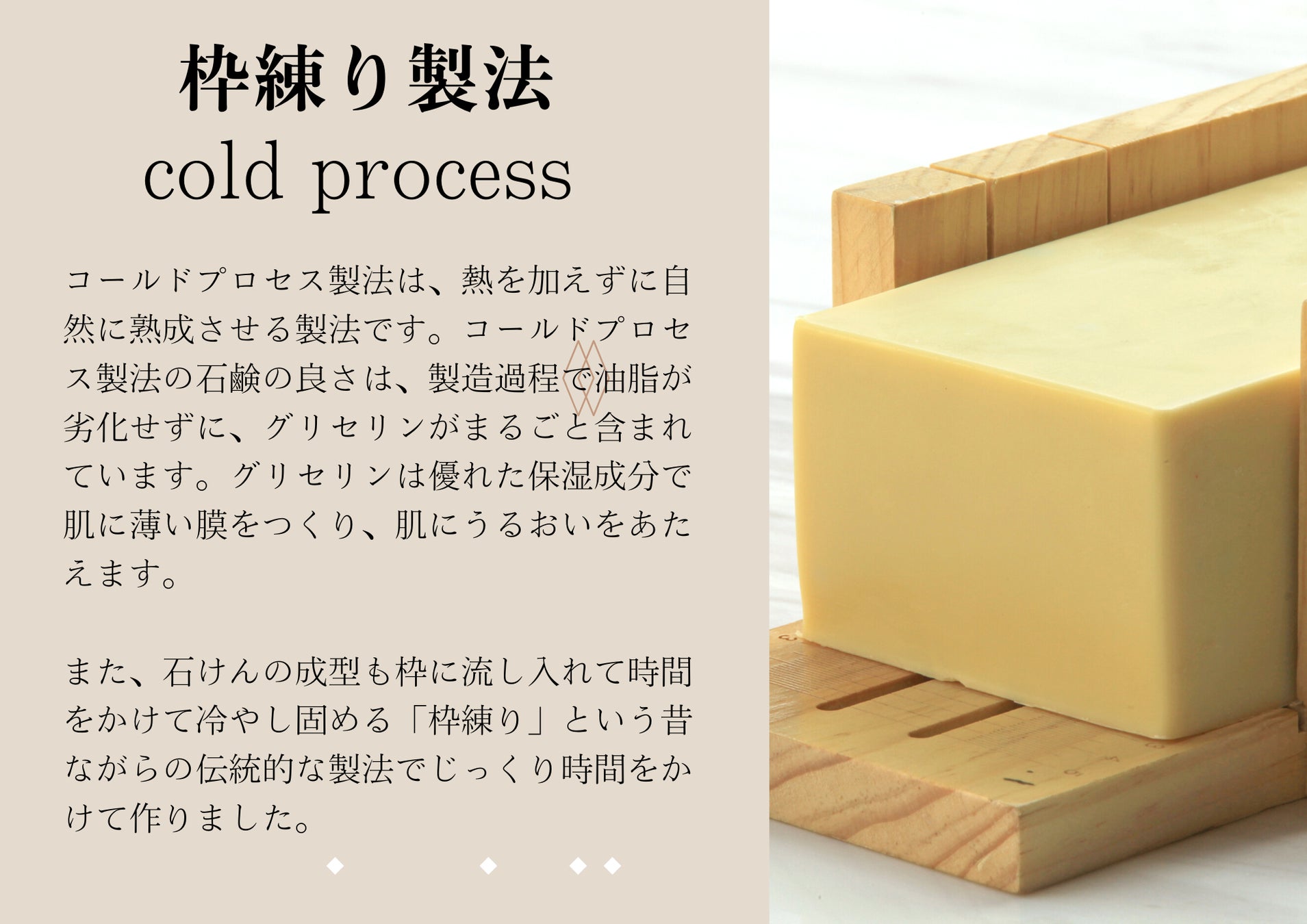 - 天然の保湿成分たっぷり。コールドプロセス製法