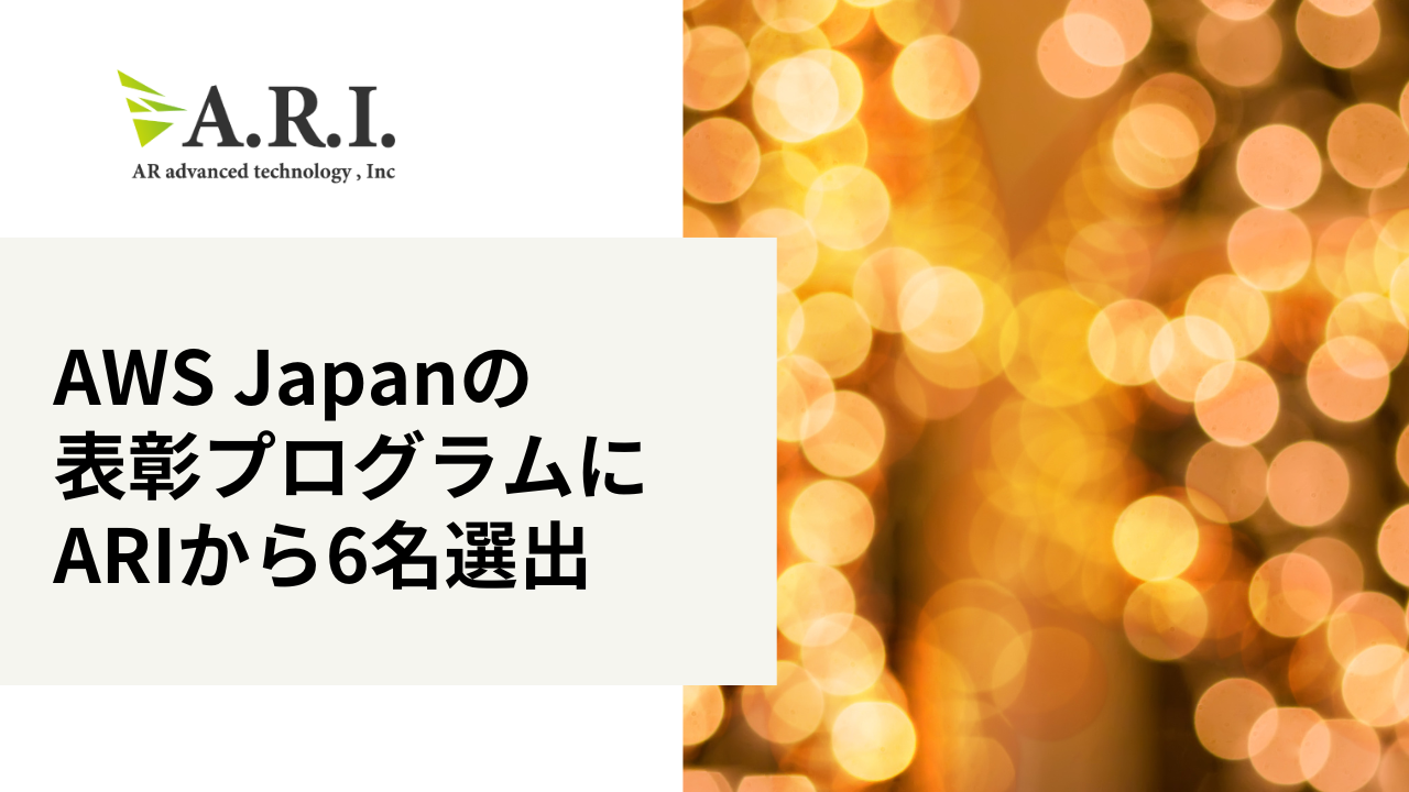 クラウド技術とデータ・AI活用によるデジタル化サービスを提供するARアドバンストテクノロジ株式会社(本社:東京都渋谷区、代表取締役社長:武内 寿憲、以下ARI)は、2024年6月20日に発表されたアマゾン ウェブ サービス ジャパン(以下AWSジャパン)が主催するAWSパートナーネットワーク(以下APN) に加入しているAWSパートナー企業の所属エンジニアを対象にした AWS ジャパン独自の表彰プログラムにおいて、当社社員が下記2部門において計6名表彰されたことをお知らせいたします。